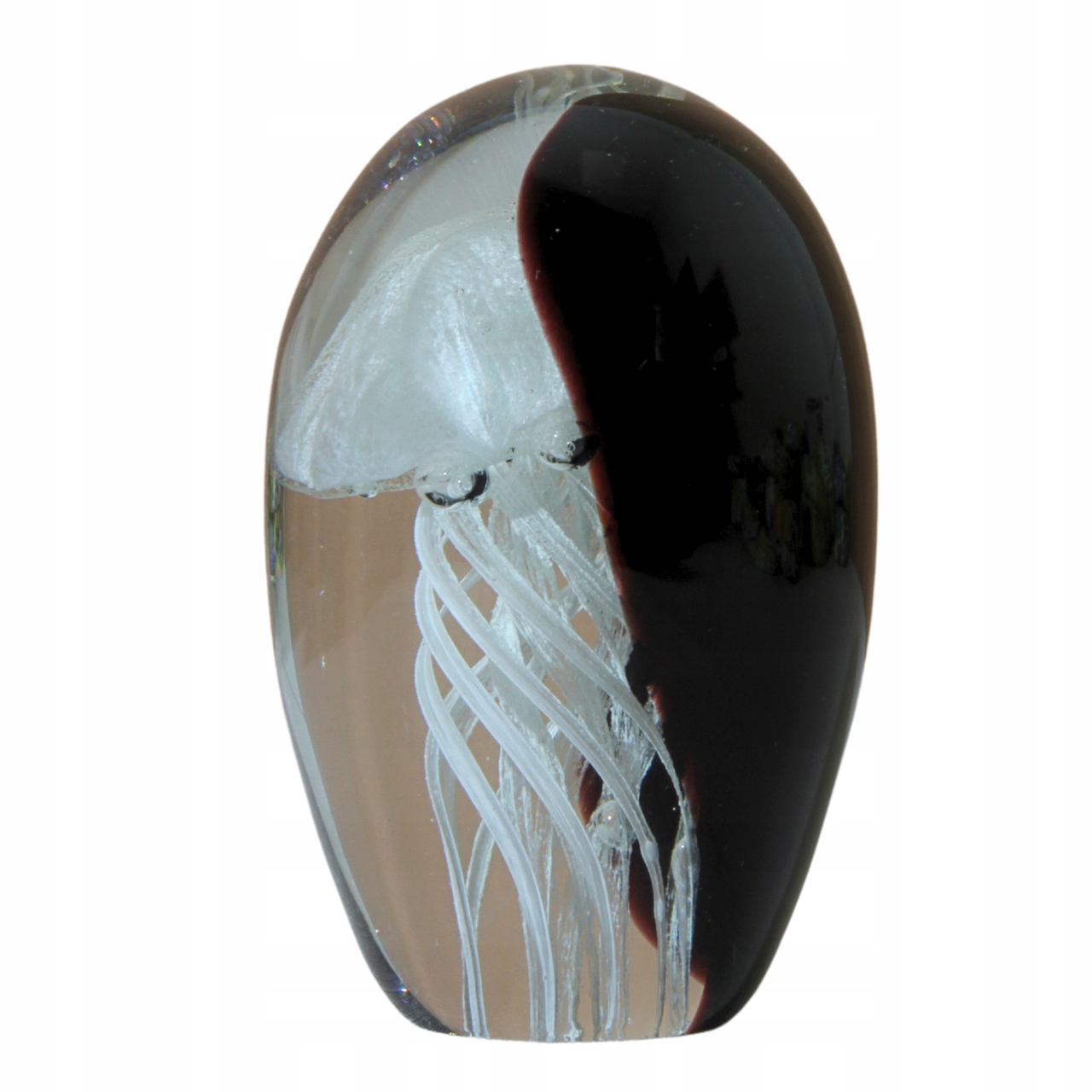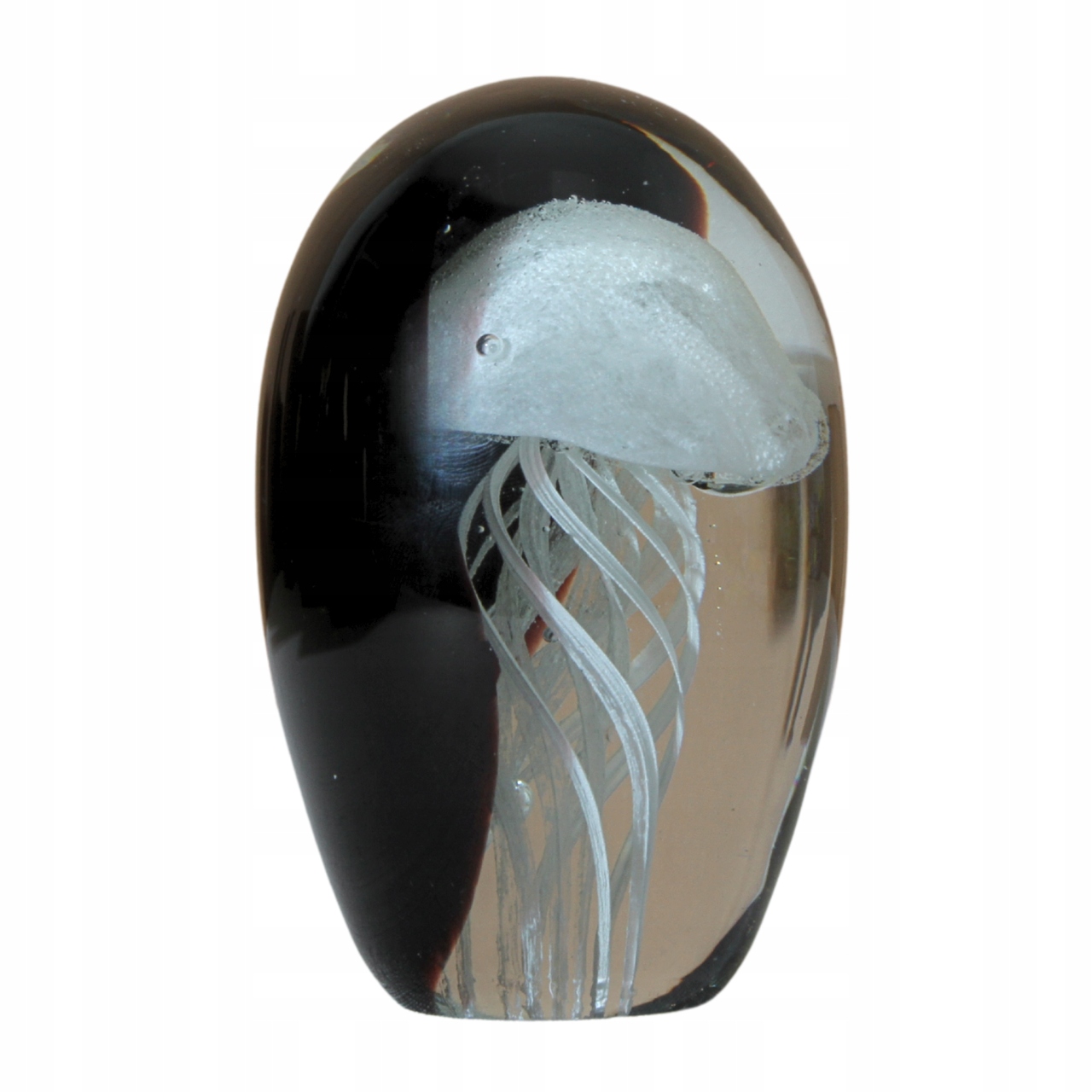 - Стильне оздоблення скла з білими медузами, укладеними в чорну прозору склянку скла. Рука -вироблена в стилі Мурано, вражає точними деталями та унікальним просторовим ефектом. Ідеально підходить для елегантних інтер'єрів, надаючи їм сучасний та мистецький характер.