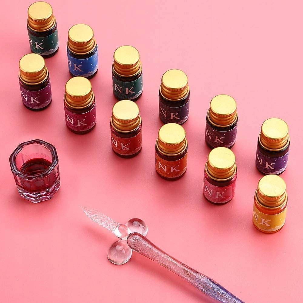 СКЛЯНА РУЧКА НАБІР СКЛЯНИХ РУЧОК ДЛЯ КАЛІГРАФІЇ ПОДАРУНОК 12 ЧОРНИЛ