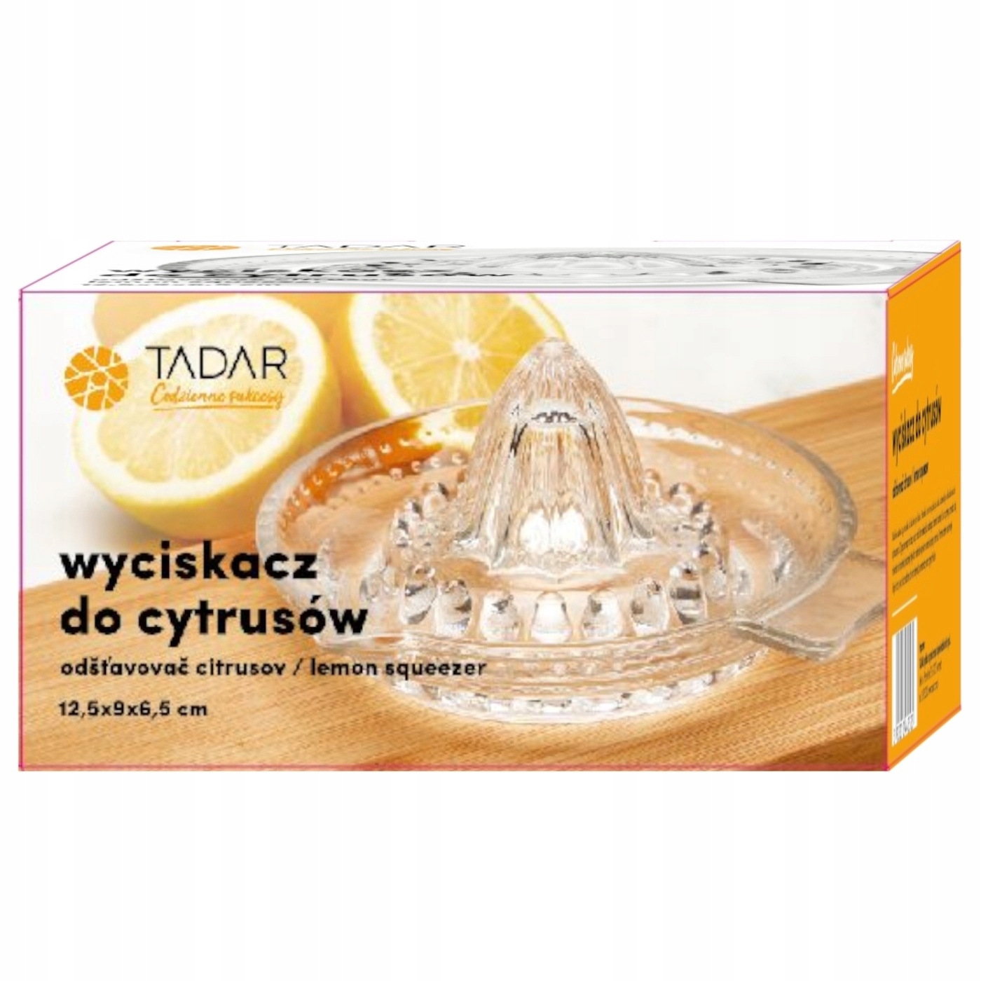Соковижималка для цитрусових Tadar 14 x 13,5 x 6,5 см повністю виготовлена зі скла. У ньому буде апельсиновий або лимонний сік, перш ніж його потрібно буде злити. Вся конструкція виробу зручна і безпечна для харчових продуктів. З його допомогою ви не докладете зусиль для вичавлювання цитрусових. Віджатий сік зручно збирати, щоб при необхідності додати. Від свіжого соку можна легко відокремити насіння і м’якоть. Ви можете зручно спорожнити скляну ємність від соку і приготувати домашній лимонад. Продукт легко зберігати та можна мити в посудомийній машині.