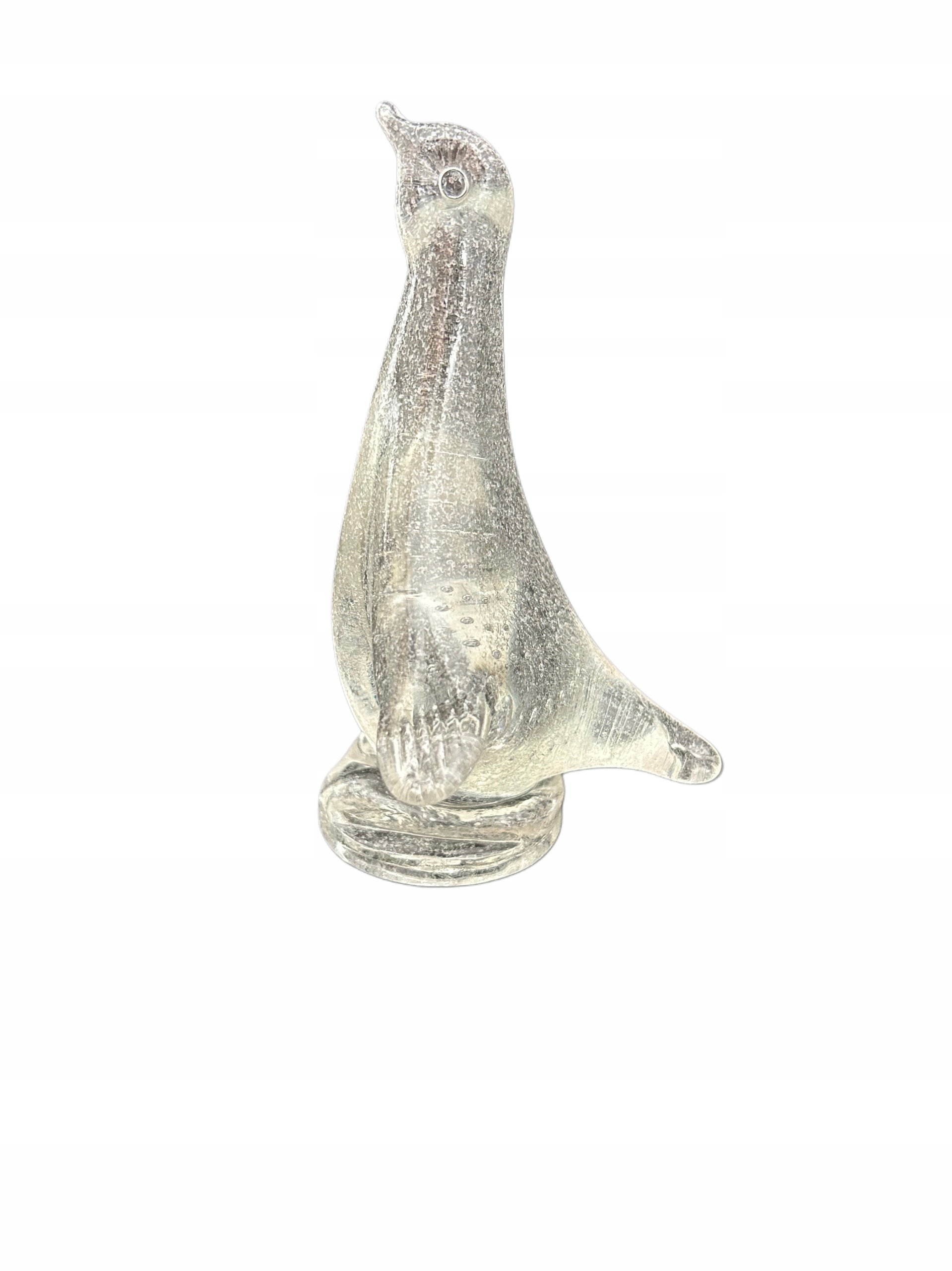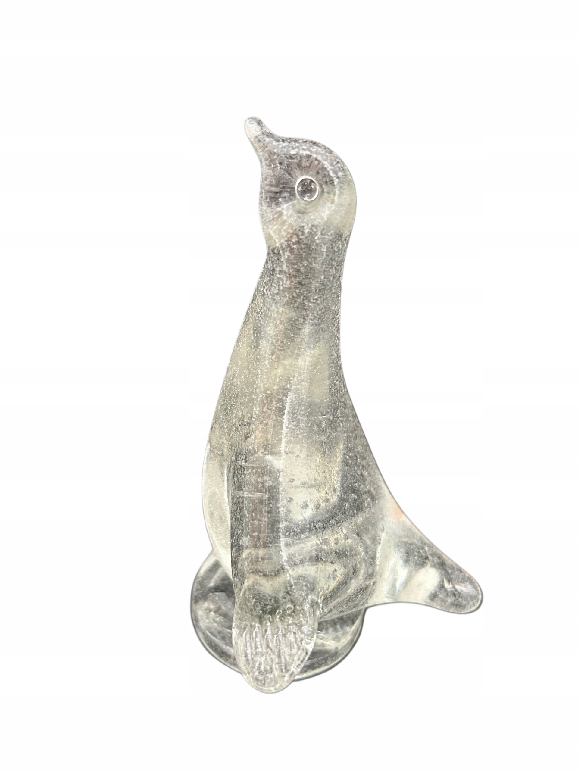 Чудова фігурка пінгвіна ручної роботи з прозорого скла. Усередині вбудовані крихітні бульбашки повітря, що надає йому унікального характеру та легкості.