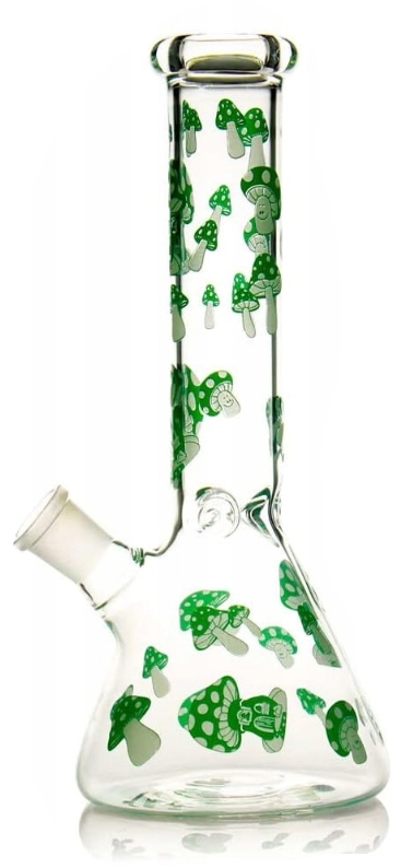Скляна водна труба з бонго з цікавим малюнком зелених грибів
