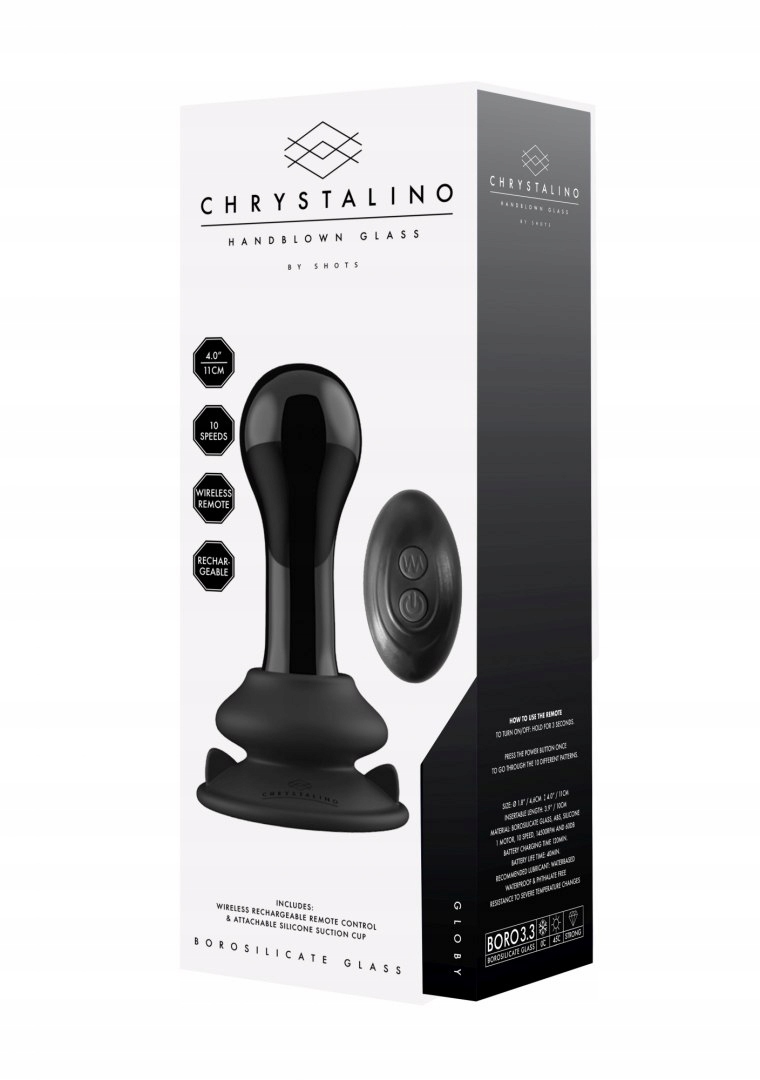 Цей потужний скляний вібратор Chrystalino пропонує 10 швидкостей вібрації та виготовлений із високоякісного чорного боросилікатного скла, яке безпечне для тіла та не розбивається.