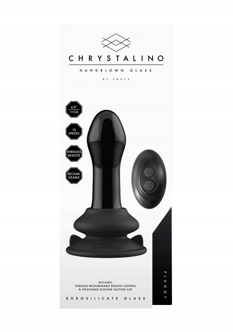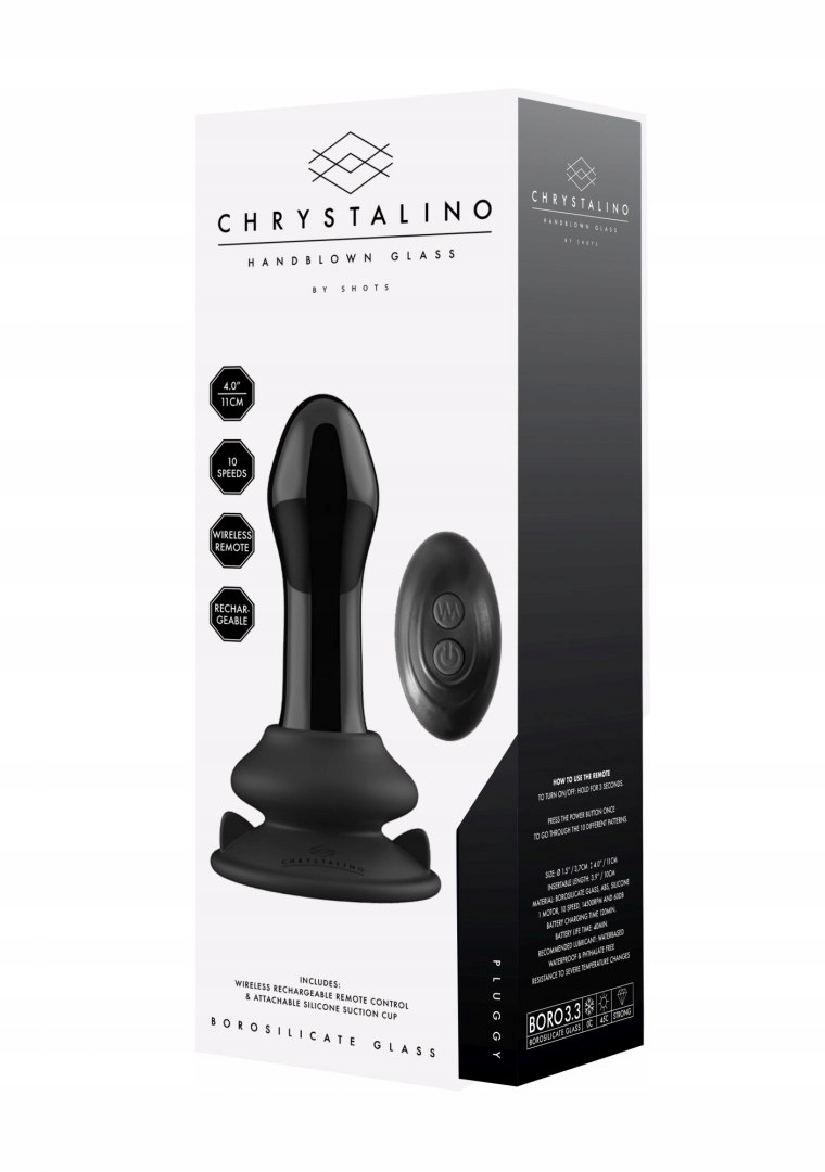 Скляна анальна пробка з дистанційним керуванням на присосці, 10 вібрацій