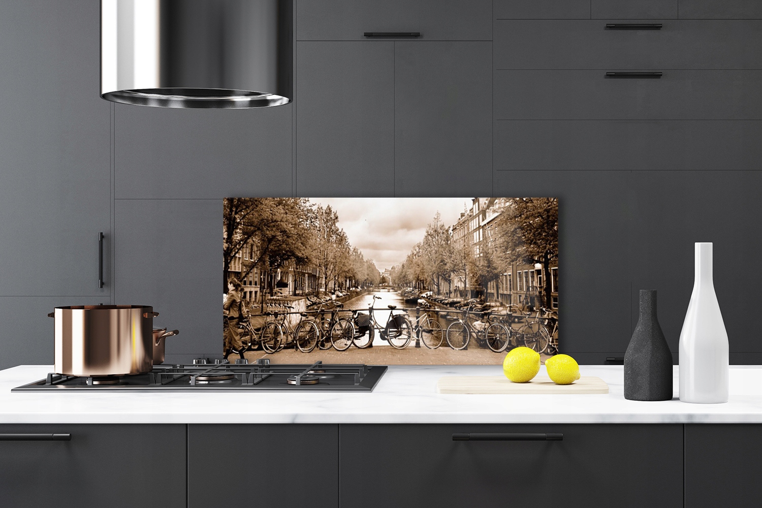 Скляне панно Декор Річка Велосипед Дерева 100х50