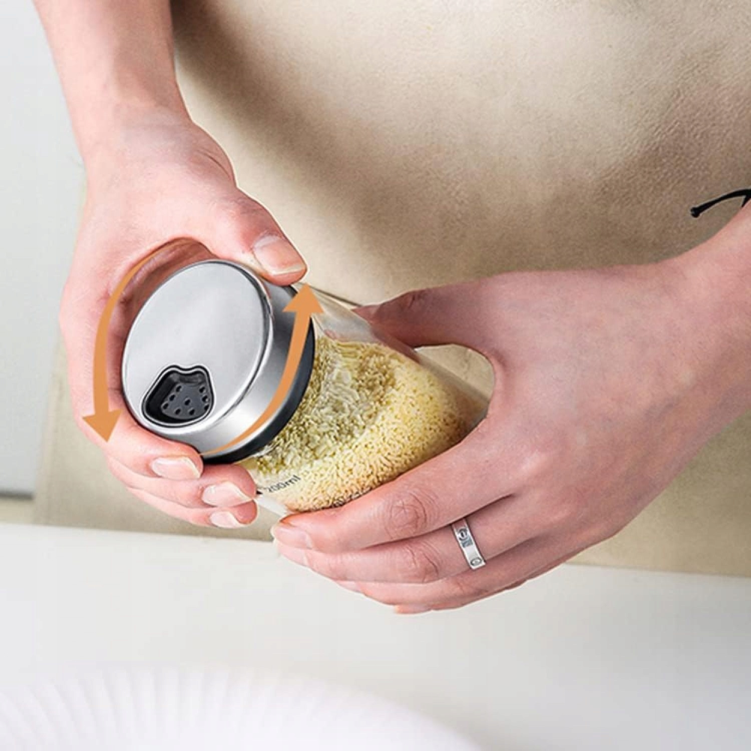 - Контейнер для спецій з обертовою кришкою має 3 обертові спеції, які можна вільно обертати і регулювати залежно від товщини спецій та різних застосувань. отвір.