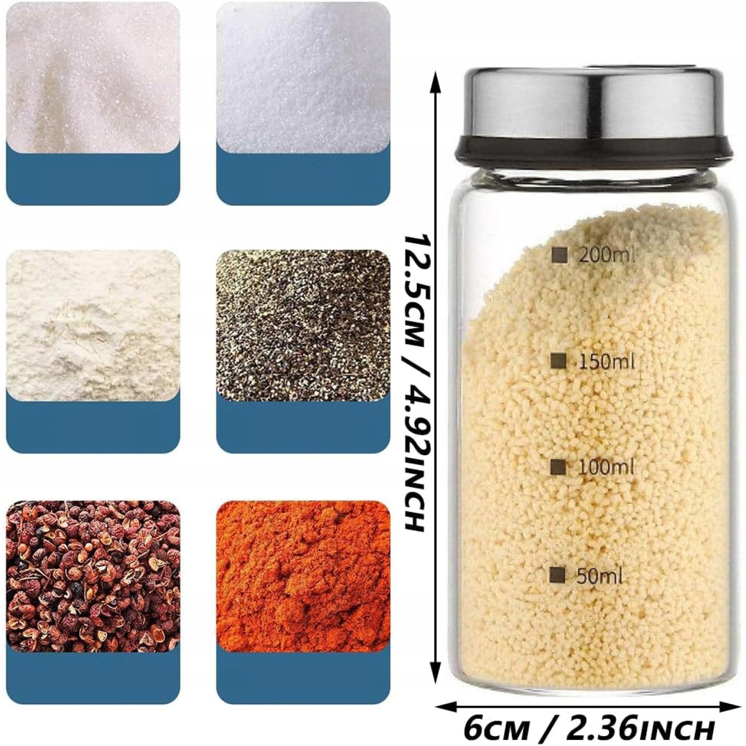 - Наші квадратні спеції можуть бути використані для зберігання різних спецій, таких як сіль, цукор, мг, перець, порошок чилі та інші спеції. повітря.