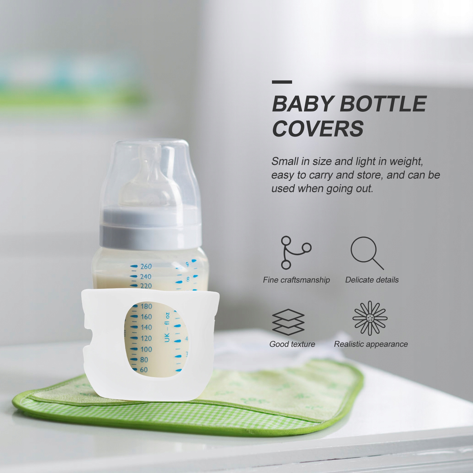 Ви все ще шукаєте практичну та доступну кришку для дитячої пляшечки? Чому б не поглянути на наші чохли для дитячих пляшечок? Він може ефективно пом’якшити удар дитячої пляшечки, коли вона падає на землю, запобігає розбиттю скла під час падіння дитячої пляшечки та робить дитину безпечнішою та впевненішою.