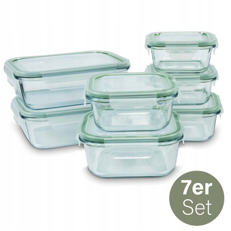 Набір прозорих скляних контейнерів з герметичним закриттям для зберігання їжі. Набір був виготовлений повністю з високоякісного пластику, стійкого до температури в діапазоні від -40 до +400 ° С.