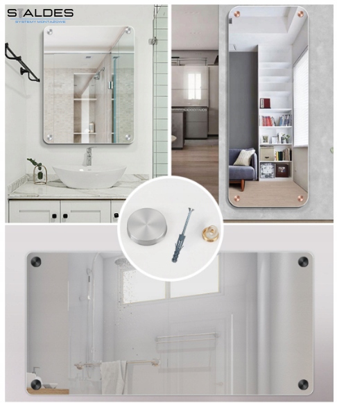Набір підходить для кріплення вивісок, скла, дзеркал, табло, табличок, полиць, літер , ручки тощо, виготовлені з різних матеріалів, наприклад скла, плексигласу, алюмінію.