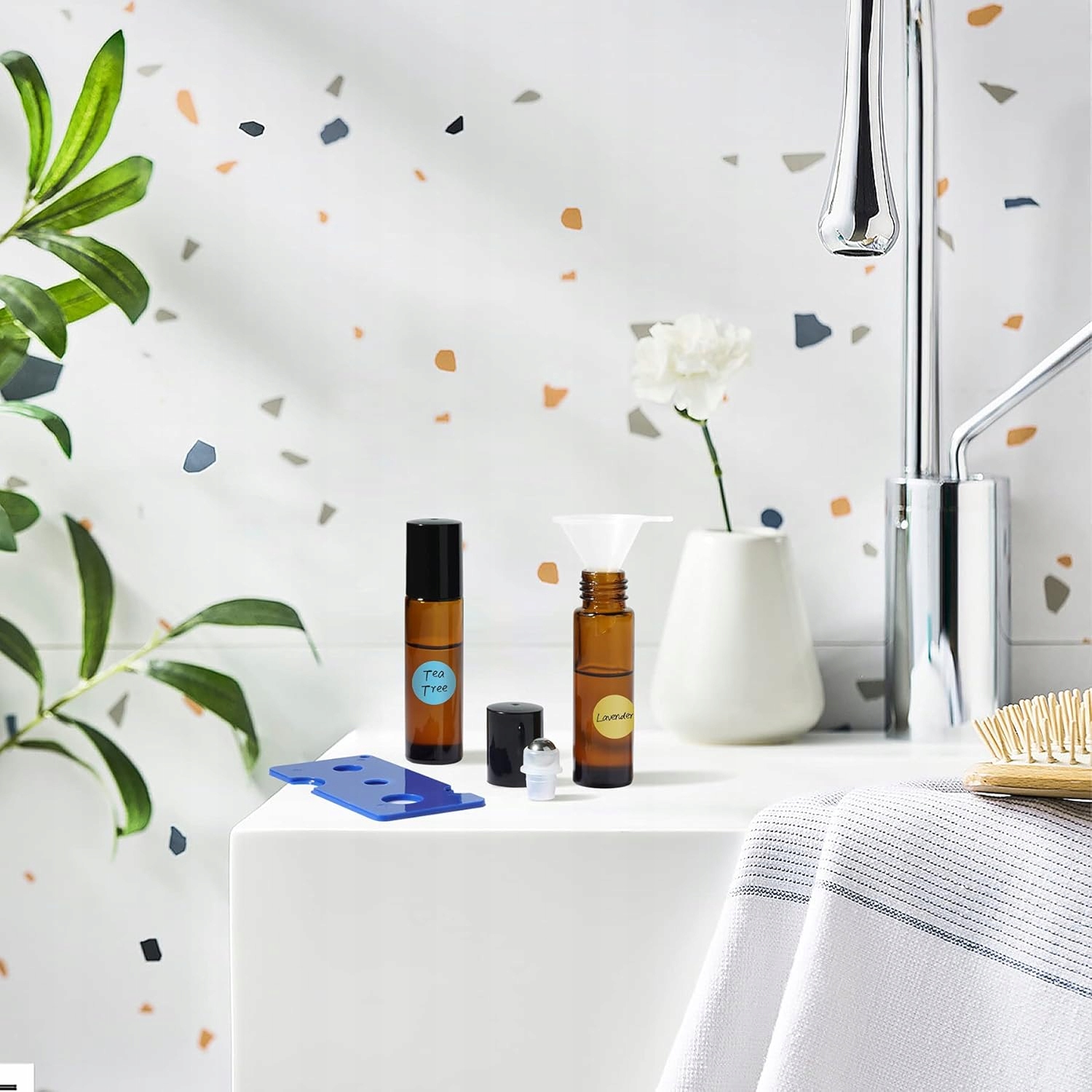 Весь набір постачається з 24 пакетами коричневого скла з ємністю 10 мл із закриттям, 30 кришками з нержавіючої сталі та додатковими 20 етикетками, 2 воронками, 2 скрами та 2 відкривачем. Зустріньте своє задоволення від саморобних масел, дезодорантів, ароматів, бальзамів для губ та інших косметичних застосувань.