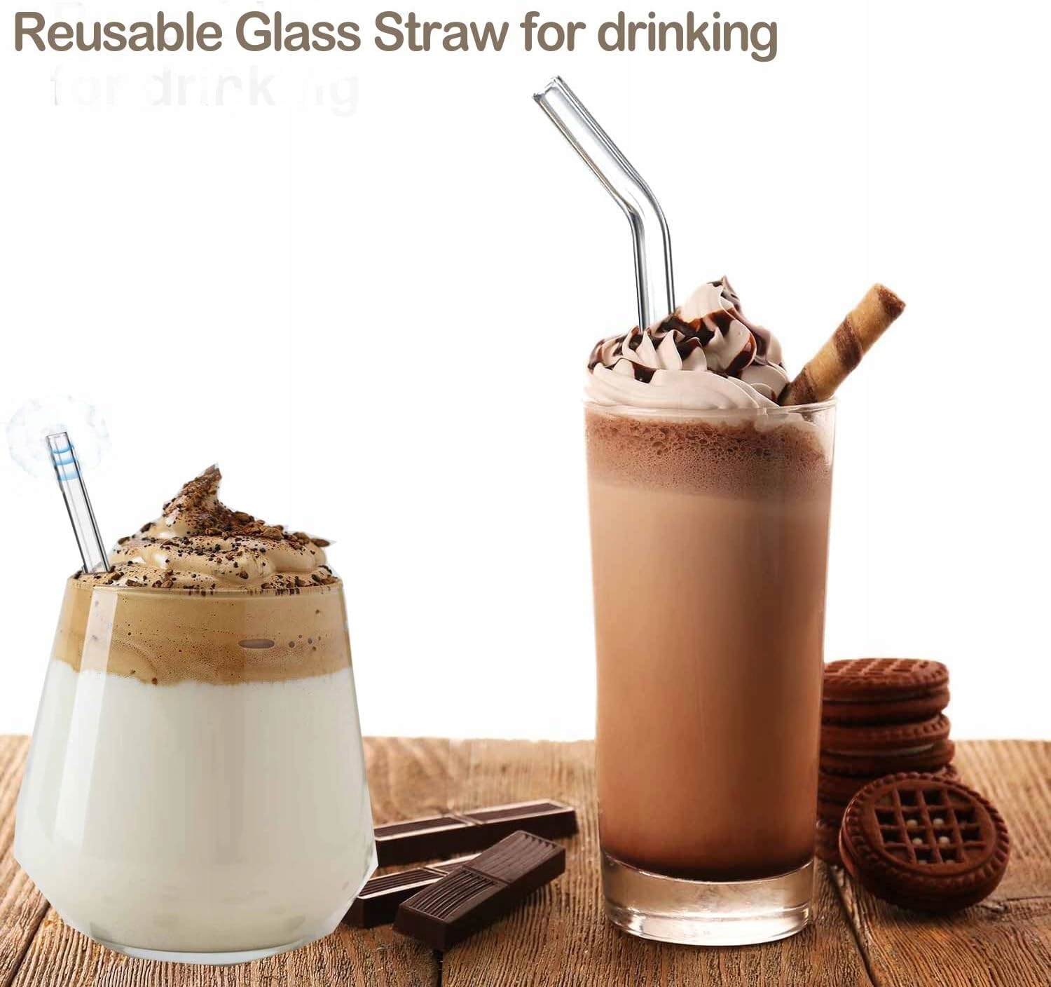 - ✿ Легко чистити – скляні соломинки довгі та легко очищаються, просто вставте щіточку в соломинку та покрутіть, щоб вони були чистими та охайними. Вони придатні для багаторазового використання та корисні для здоров’я вашої родини.