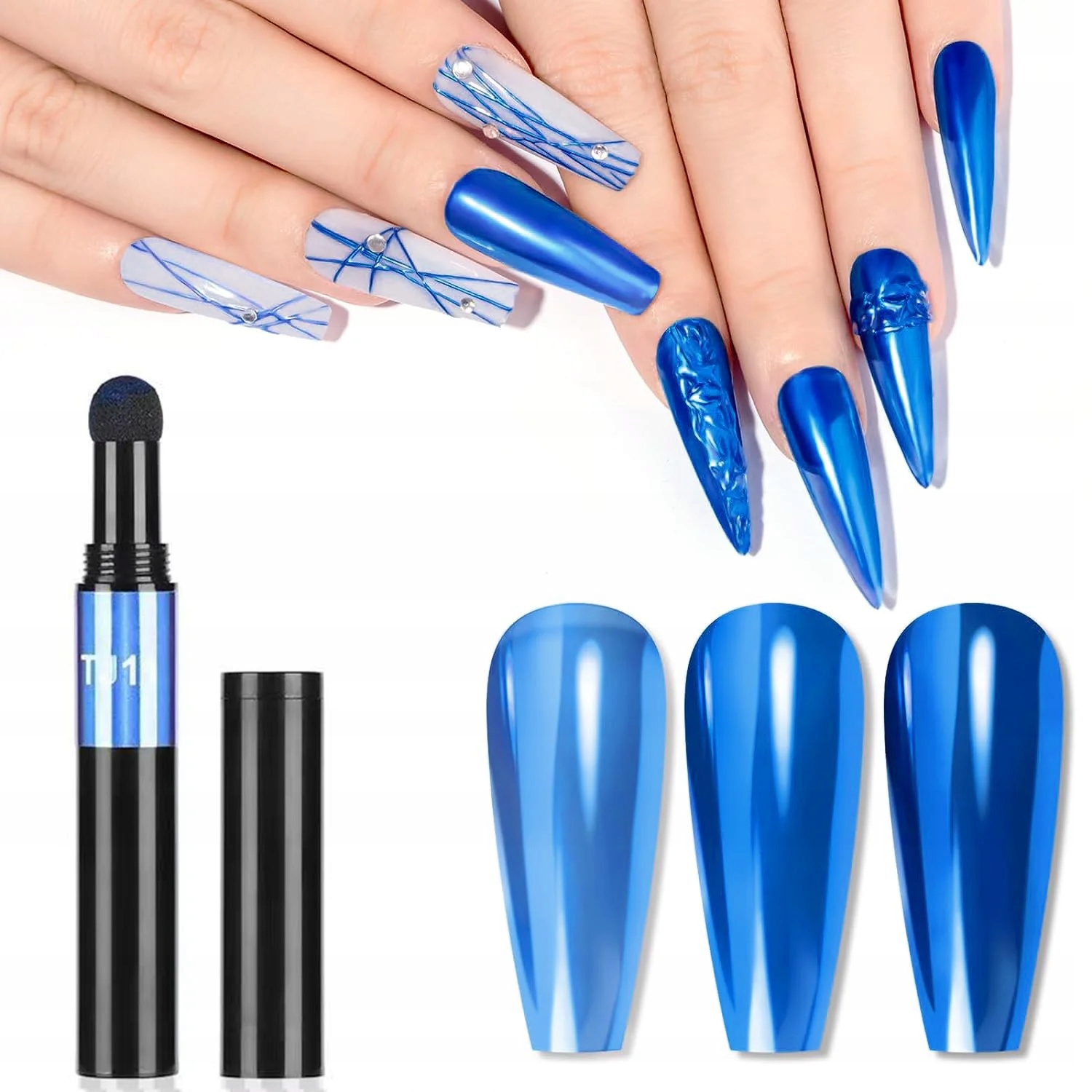 Дзеркальний ефект пилки нігтів у ручці - хромовий ефект, дзеркальний ефект синій