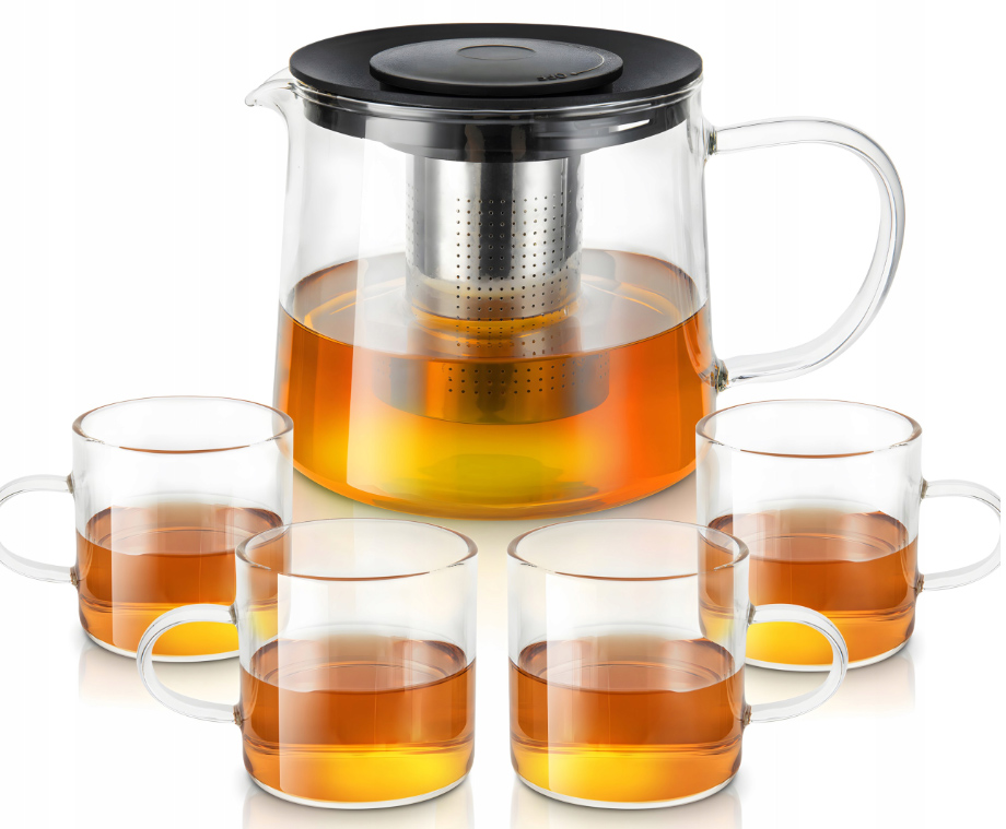 Чайник Brunbeste 1,5 л із заваркою виготовлений з боросилікатного скла. Він легкий, має кристалічну структуру і чудово підкреслює колір напоїв. Він також дуже стійкий до термічного удару, подряпин і потьмяніння. У такому глечику можна приготувати гарячий чай і домашній лимонад з кубиками льоду. У комплект також входить вставка з нержавіючої сталі у вигляді заварки. Завдяки ньому можна якісно заварювати листовий чай і відокремлювати замочену траву від напою. Кришка глечика виготовлена з чорного бакеліту. Захищає вміст від забруднення. Він також захищає від проливання під час транспортування. Виріб також має носик для точного наливання. Скляний глечик можна мити в посудомийній машині. Ви також можете елегантно розширити набір десертів, який використовуєте щодня у своєму домі.