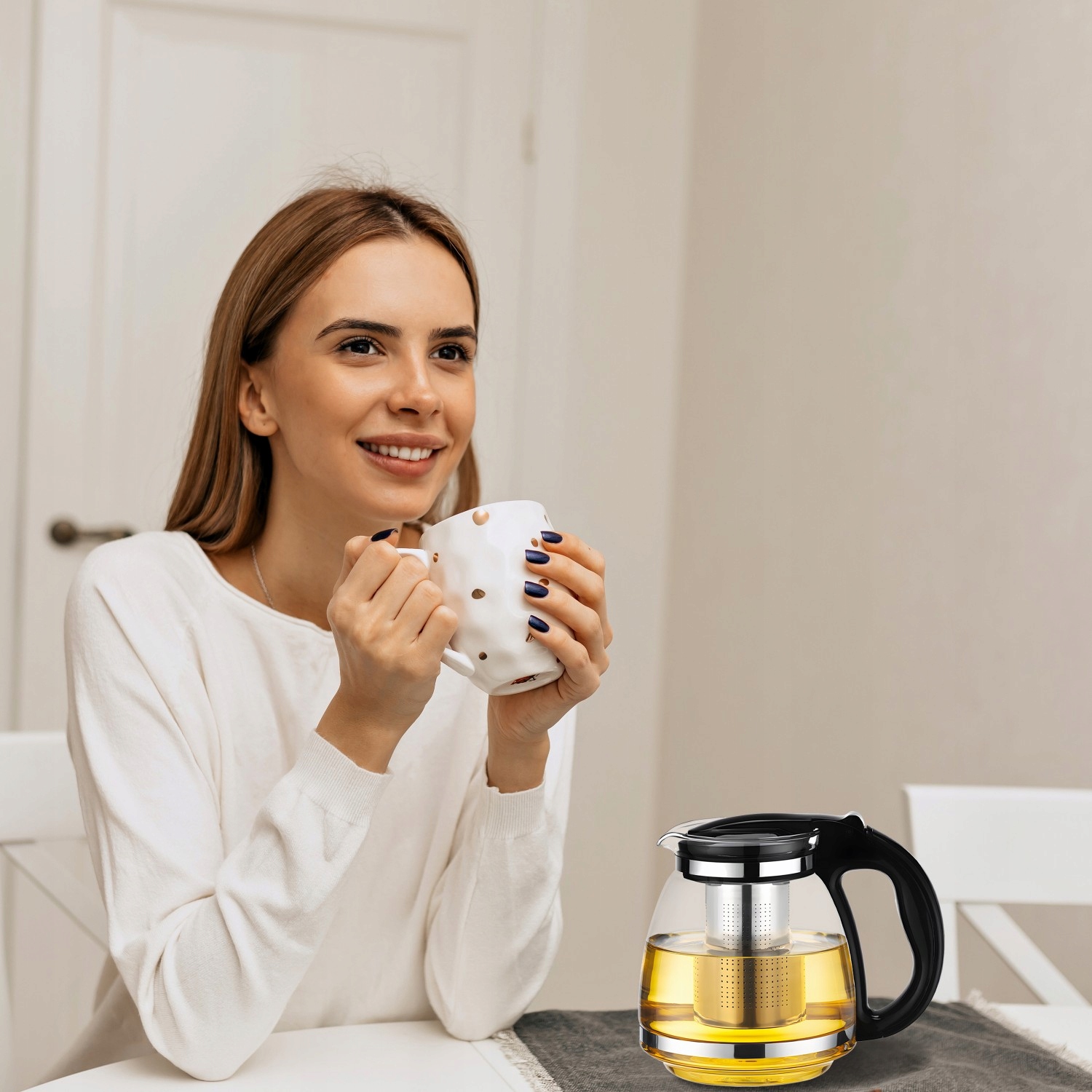 Чайник оснащений знімним ситечком для чаю з нержавіючої сталі, що забезпечує довговічність і стійкість до корозії. Завдяки цьому ви можете насолоджуватися кожним ковтком чаю, не турбуючись про металевий присмак. Нержавіюча сталь надзвичайно міцна, що гарантує тривале використання без втрати якості. Ситечко точно відокремлює гущу від настою, забезпечуючи прозорість та інтенсивність смаку чаю.