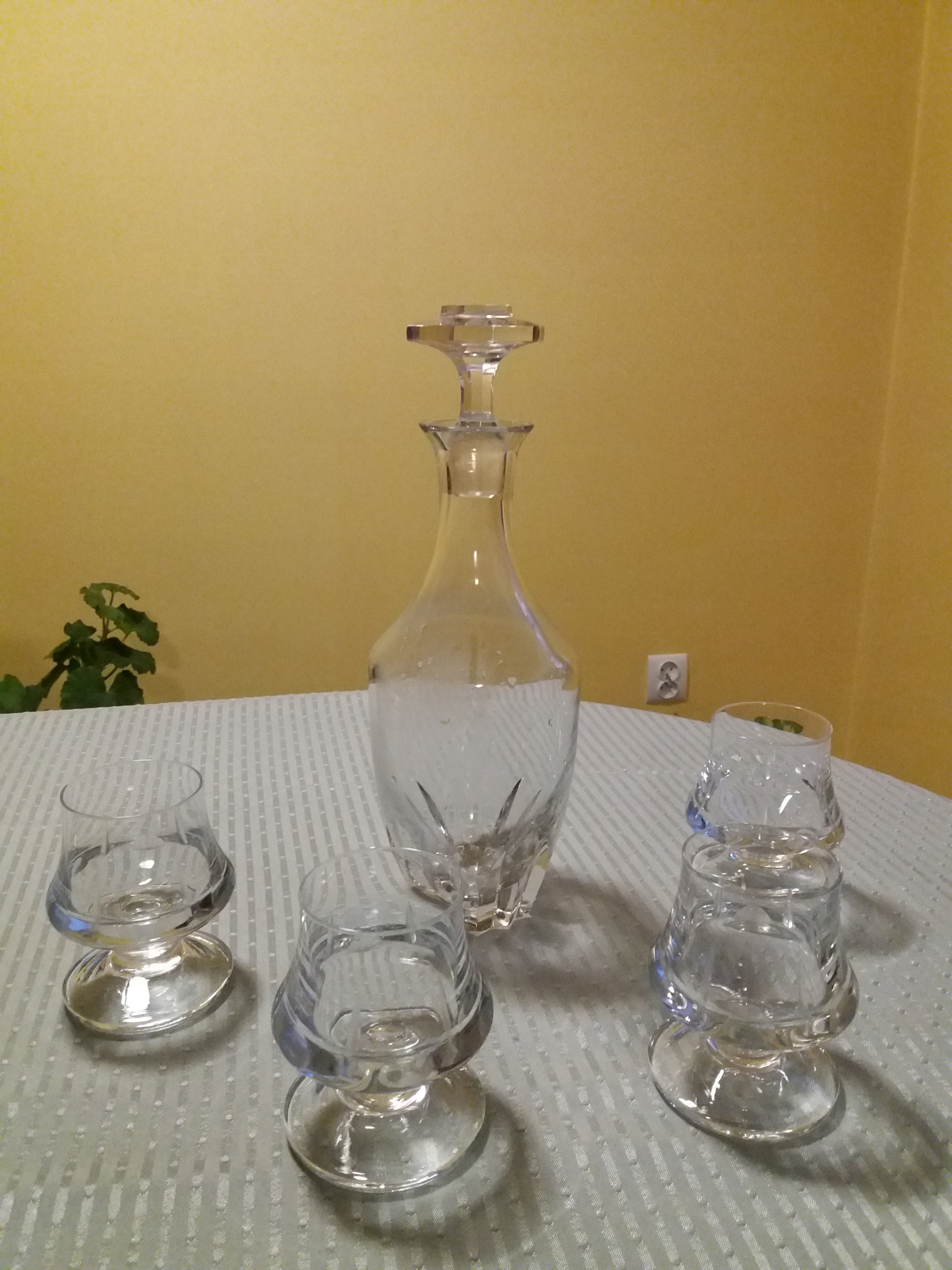 РОЗМІРИ СКЛЯНОГО ГРАФА В АР-ДЕКО: ВИСОТА З ПРОБКОВОЮ ПЛІСКОЮ 32 СМ, ДІАМЕТР ОСНОВИ 6,2 СМ, ВИСОТА СТАКА 10,5 СМ, ДІАМЕТР 6 СМ-4 ШТ.