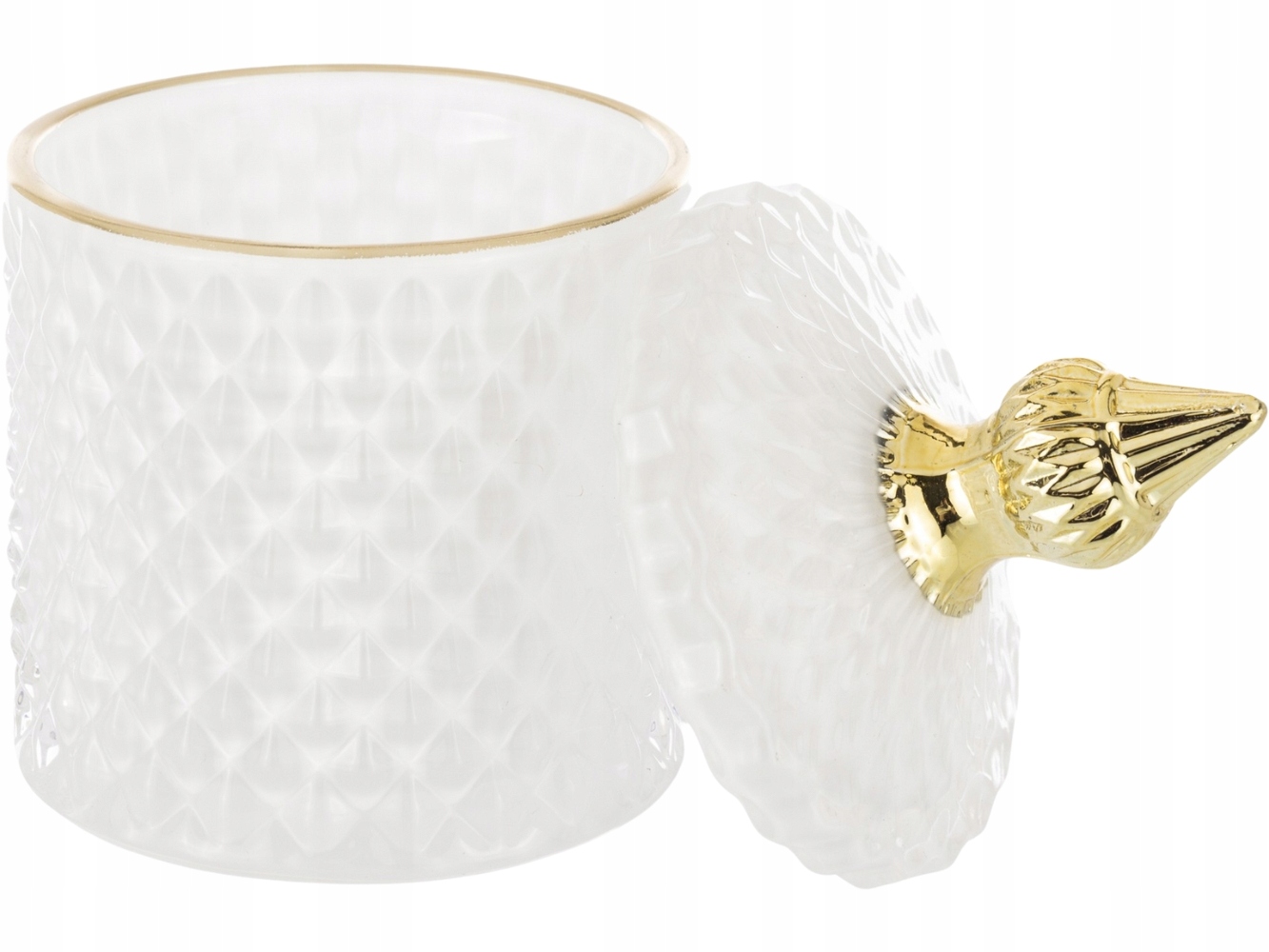 - Виготовлений з товстого тисненого скла, тонованого білого кольору, із золотою ручкою (фактичний відтінок кольору може змінюватися в залежності від індивідуальних налаштувань монітора)