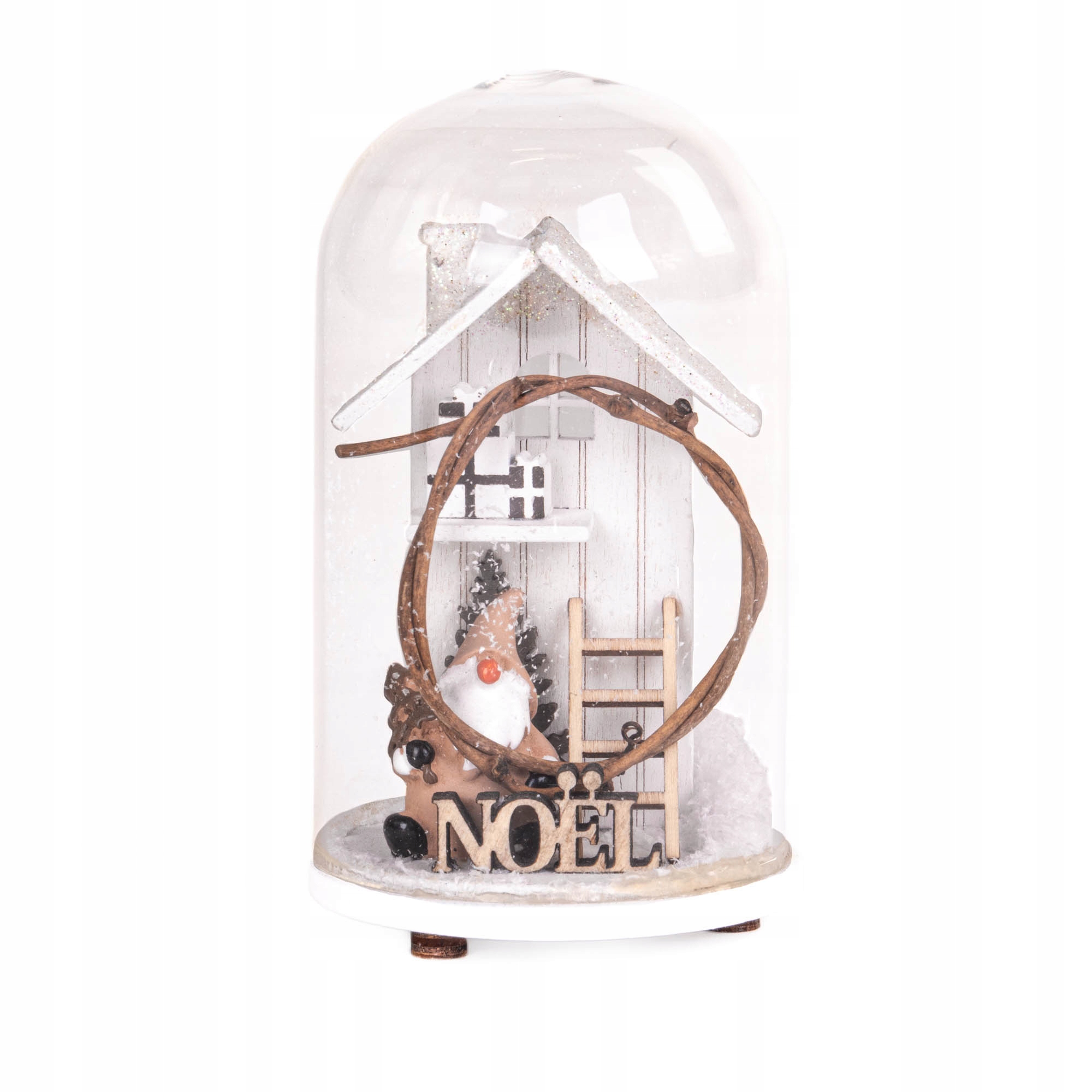 - Скляний купол з основою: Різдвяна прикраса складається з Z Скляний купол на дерев’яній основі, всередині якого є макет - Карлик зі своїм лісовим домом.