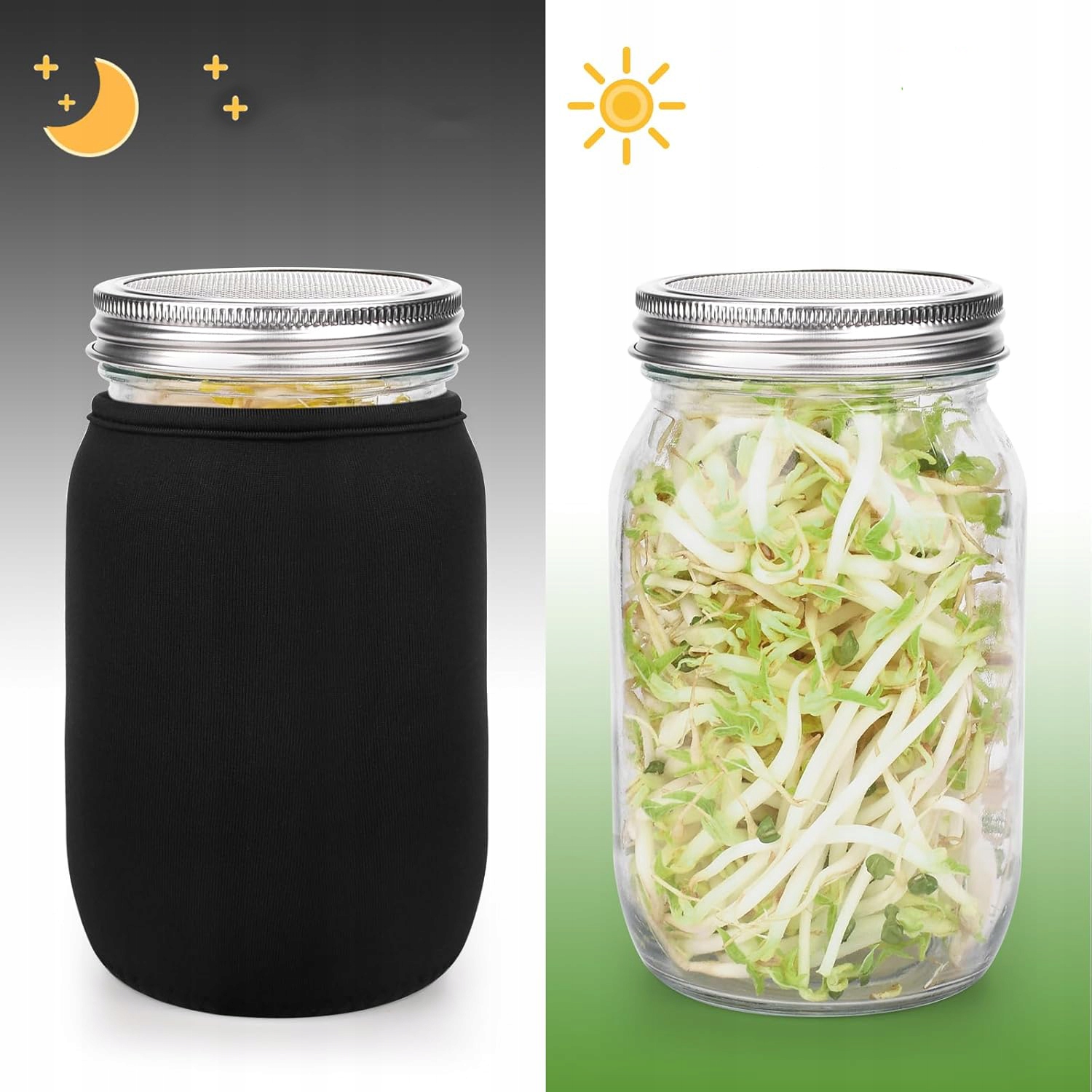 🌱 【Орекція власної зеленої】 Навіть без ґрунту ви можете легко виростити власні паростки. Завдяки цьому ви можете не тільки надихнути свою родину та друзів на рости, але й діти будуть веселитися, навчитися робити паростки та одночасно розважатися. Наша банка проростання створює ідеальний мікроклімат проростання. Через 4 - 6 днів смачні паростки готові до їжі.