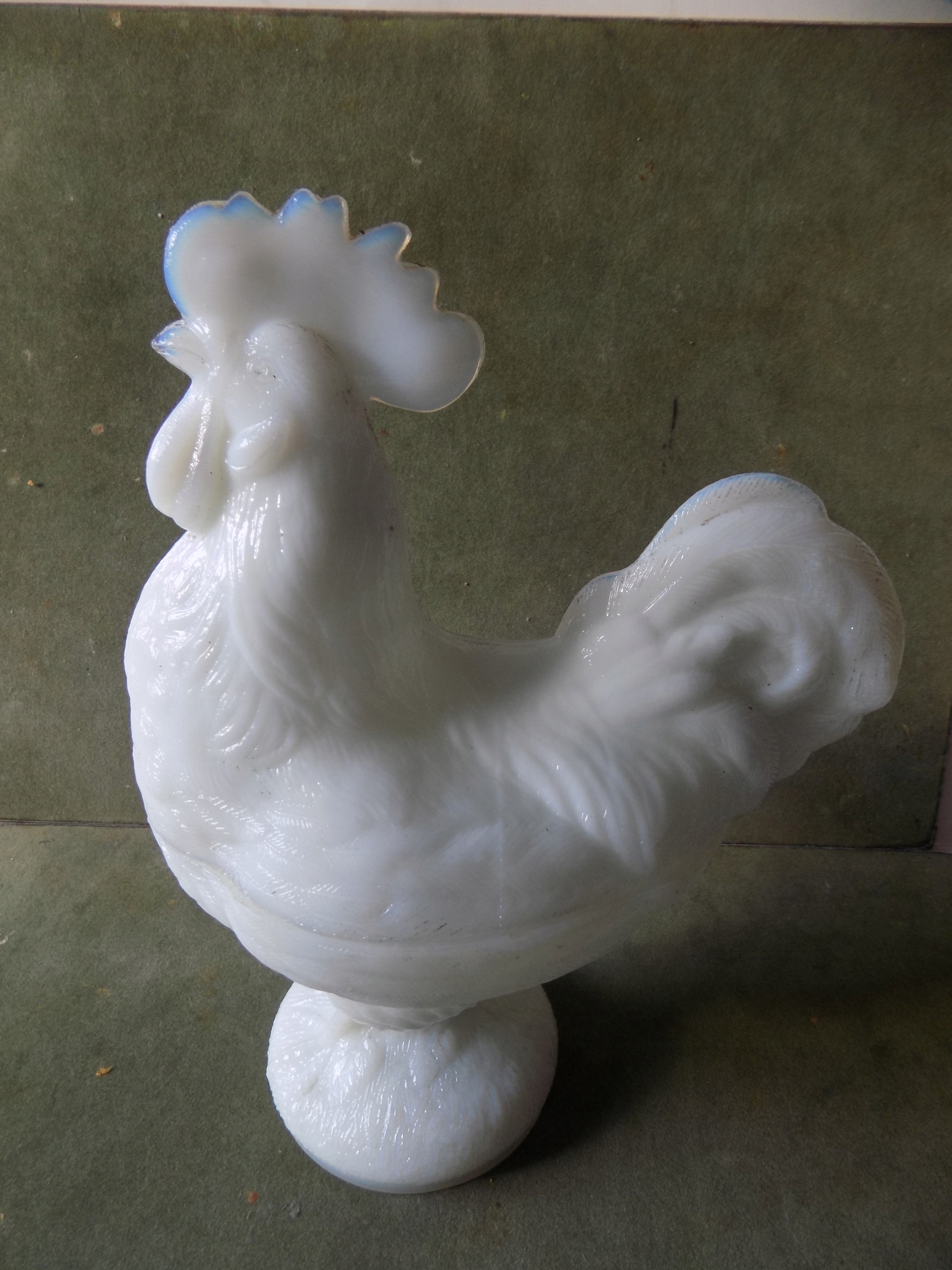Я продаю скляний півень, отвір, білий, молочний скло, 1960/70; Дуже хороший стан; Розмір ширини 17 см, висота 22 см і глибокі 11 см
