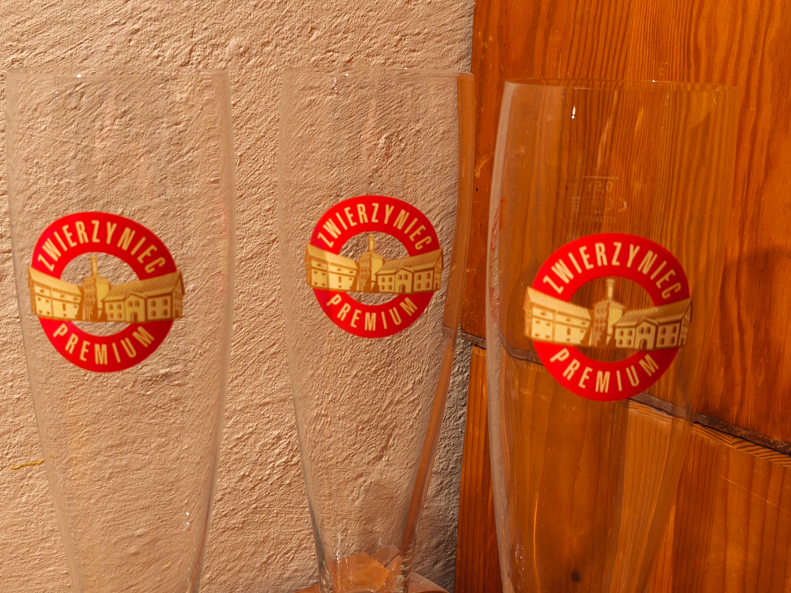 Тема продажу - це стара склянка для польського пива Zwierzyniec Premium.