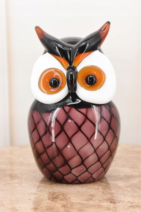 Скляний стиль Мурано - фіолетова сова - фігурна скульптура - прикраса