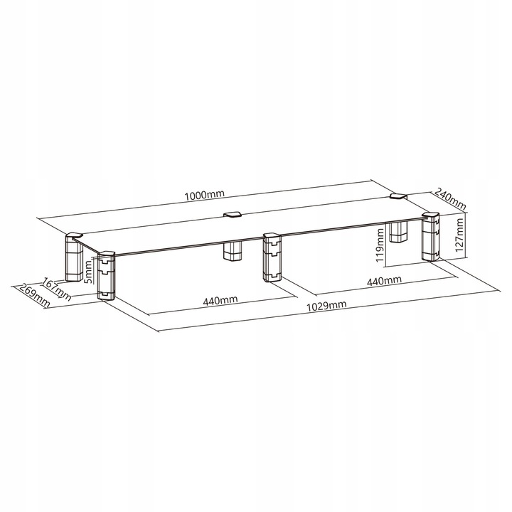 Елегантний верх загартованого скла товщиною 5 мм забезпечує міцність для пристроїв, що вагою до 20 кг.
