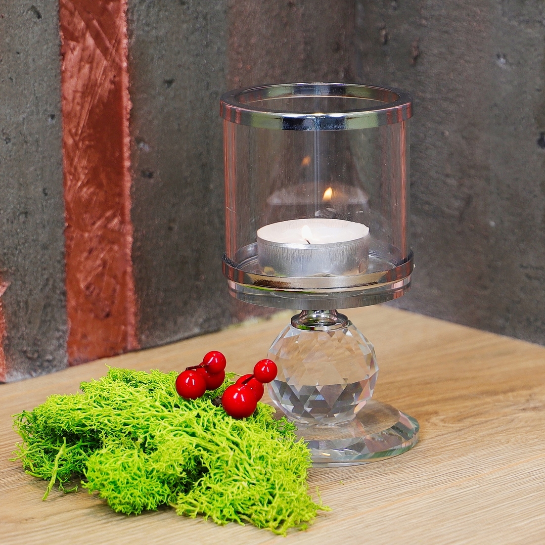 Крім того, в ніжці свічника є одна скляна кулька, з'єднана з хромованими гільзами сріблястого кольору, що підкреслює неповторний характер пропонованого виробу.