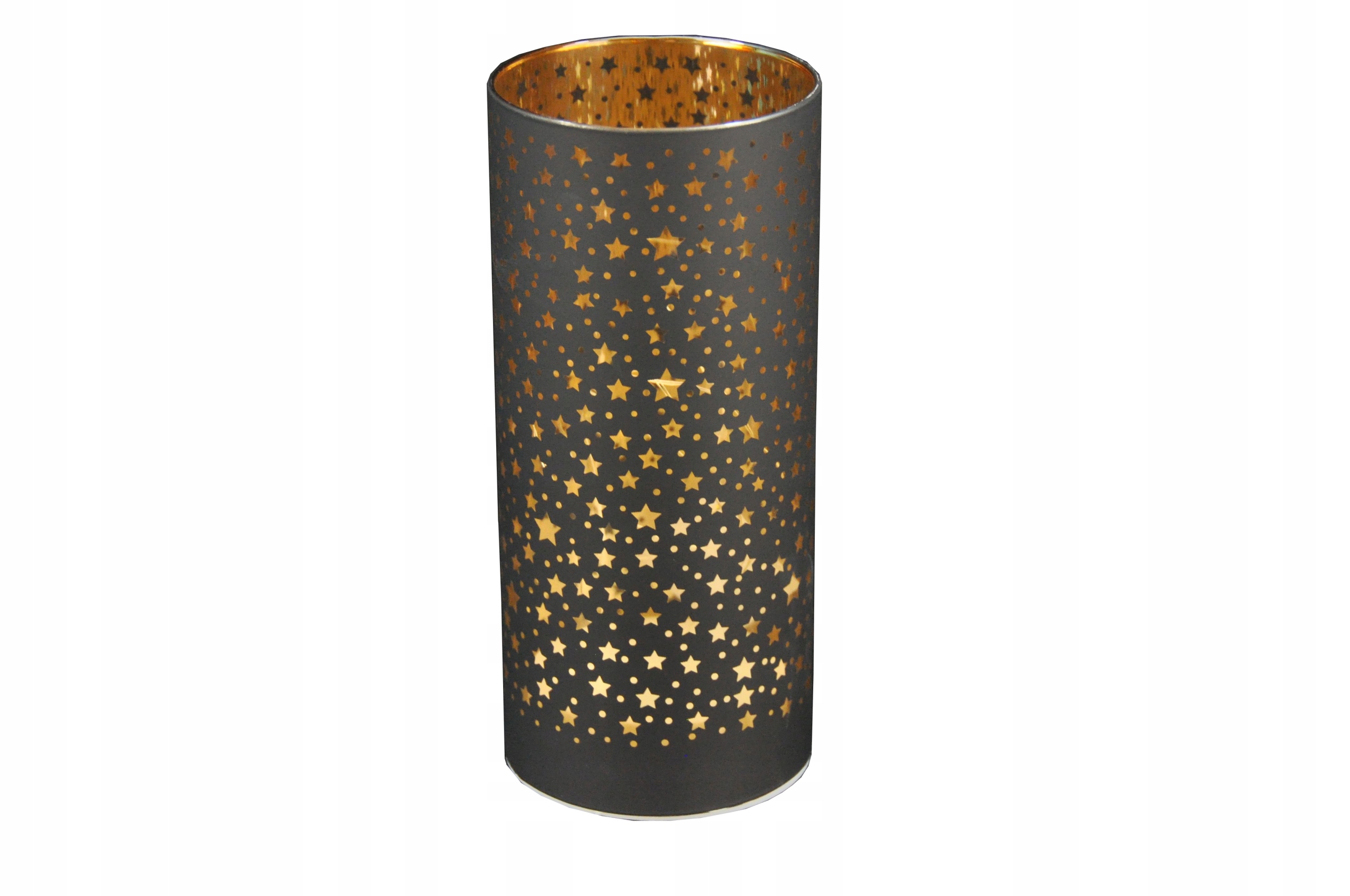 СКЛЯНИЙ СВІЧНИК З ЧОРНОГО ЗОЛОТА ЗІ СВІТОДІОДНИМИ ЗІРКАМИ