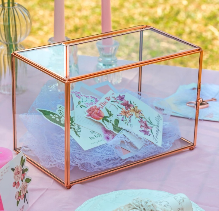 ➡️Коробка для листівок із рожевого золота, ідеально підходить для пожертвувань на весілля/душ/дівич-вечір/ювілеї/дні народження/вечірки