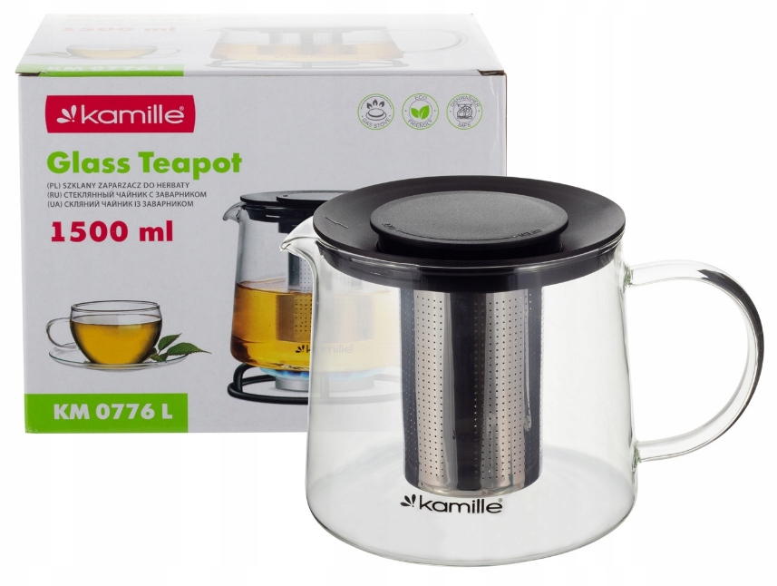 Заварка для чаю Kamille виготовлена з високоякісної нержавіючої сталі та термостійкого та міцного скла. Глечик має сталеве ситечко, яке дозволяє готувати чаї з інтенсивним смаком і ароматом всього за кілька хвилин. Форма носика дозволяє легко наливати гарячі напої в чашки.