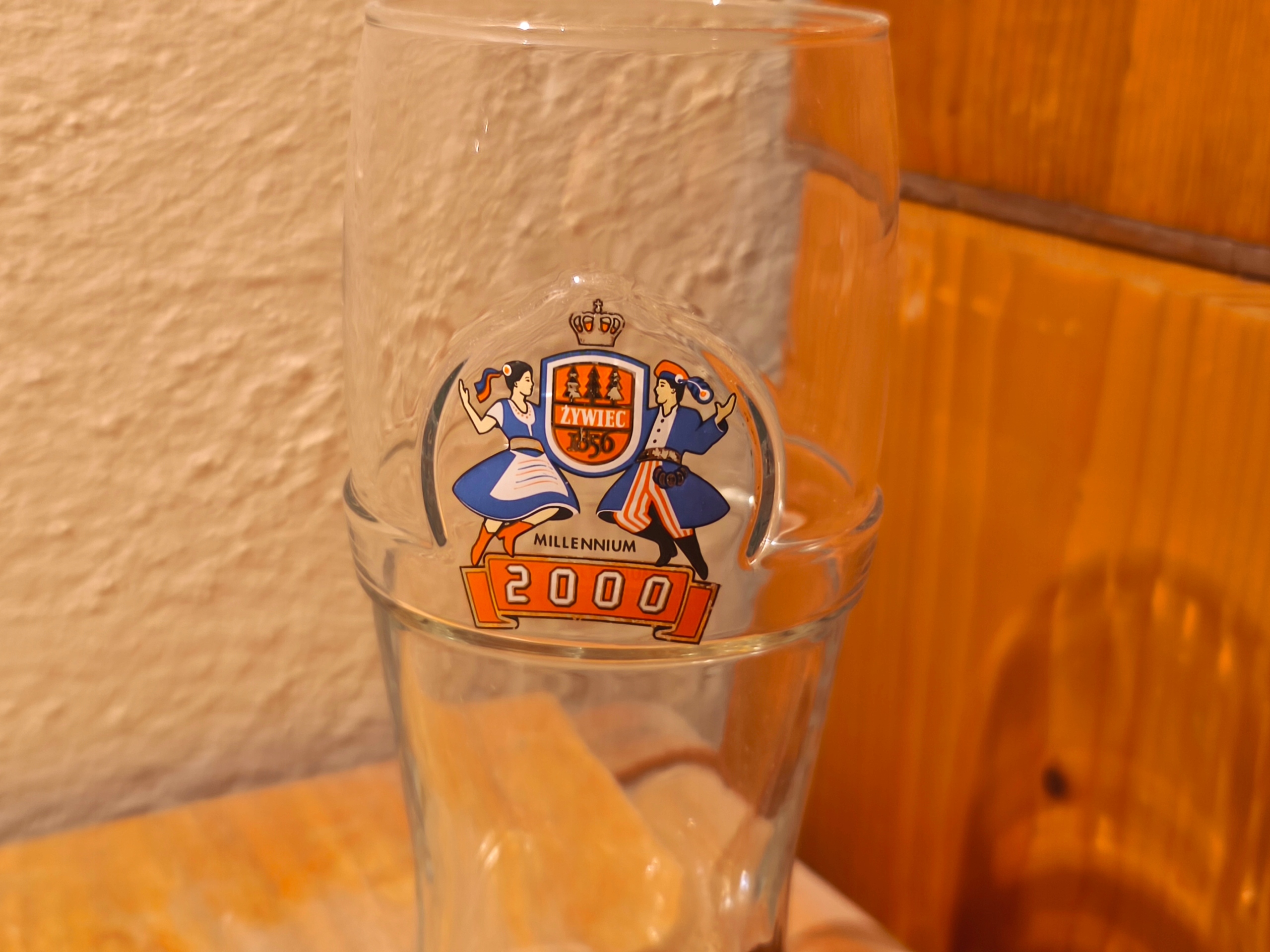 Тема продажу - це стара склянка для польського пива żywiec - Millennium 2000.
