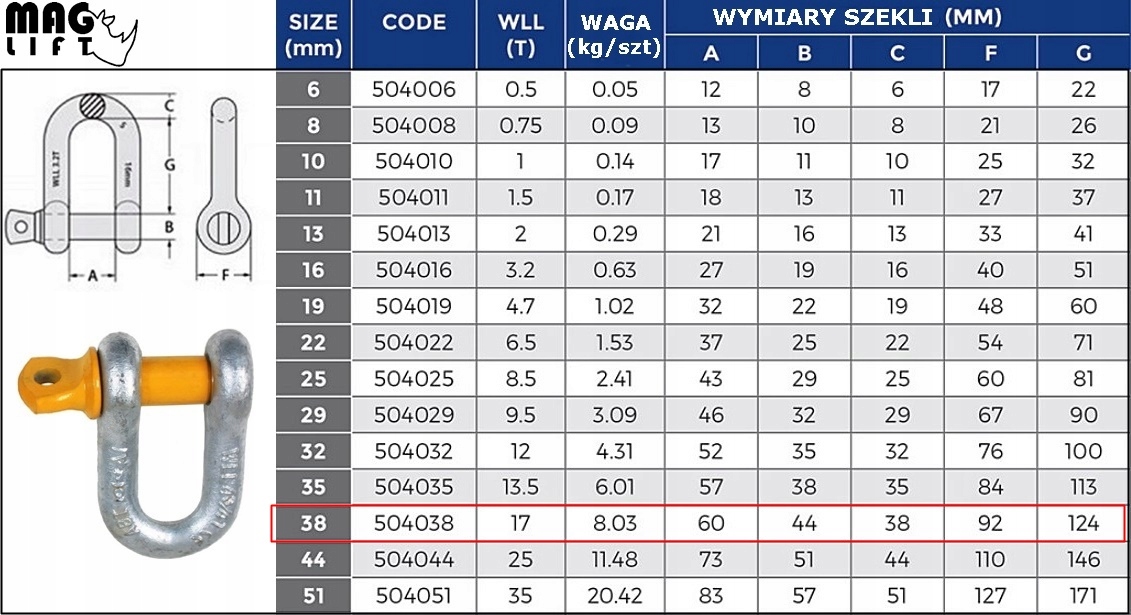 ШАКЕЛЬ ВІДПОВІДАЄ СТАНДАРТУ : PN-EN13889