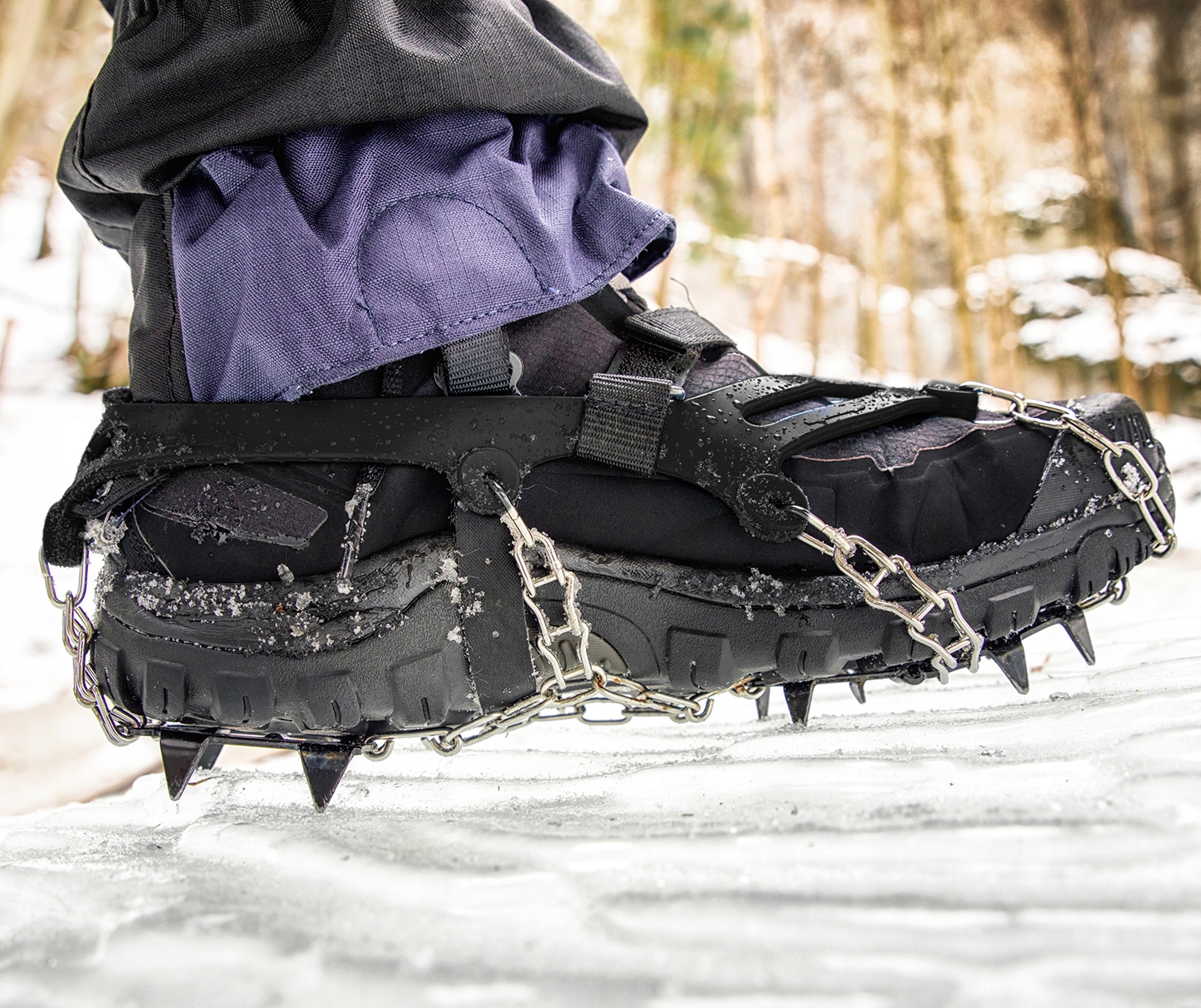 Просто одягніть туристичне взуття на черевик і зможете пересуватися небезпечною місцевістю.