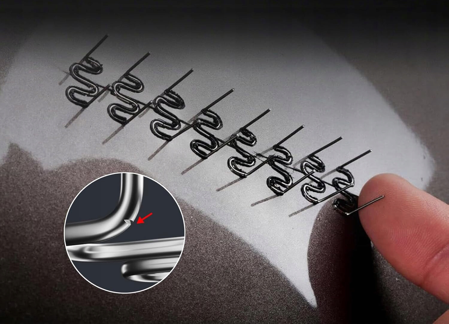 Набір для зварювання пластику простий у використанні, без складних кроків. Просто вставте зварювальний цвях у зварювальний апарат, нагрійте його та швидко приваріть до ремонтованого матеріалу. Зварювальні шипи попередньо нарізані, тому ви можете легко видалити наконечник без необхідності додаткового різання та шліфування, що спрощує весь процес.