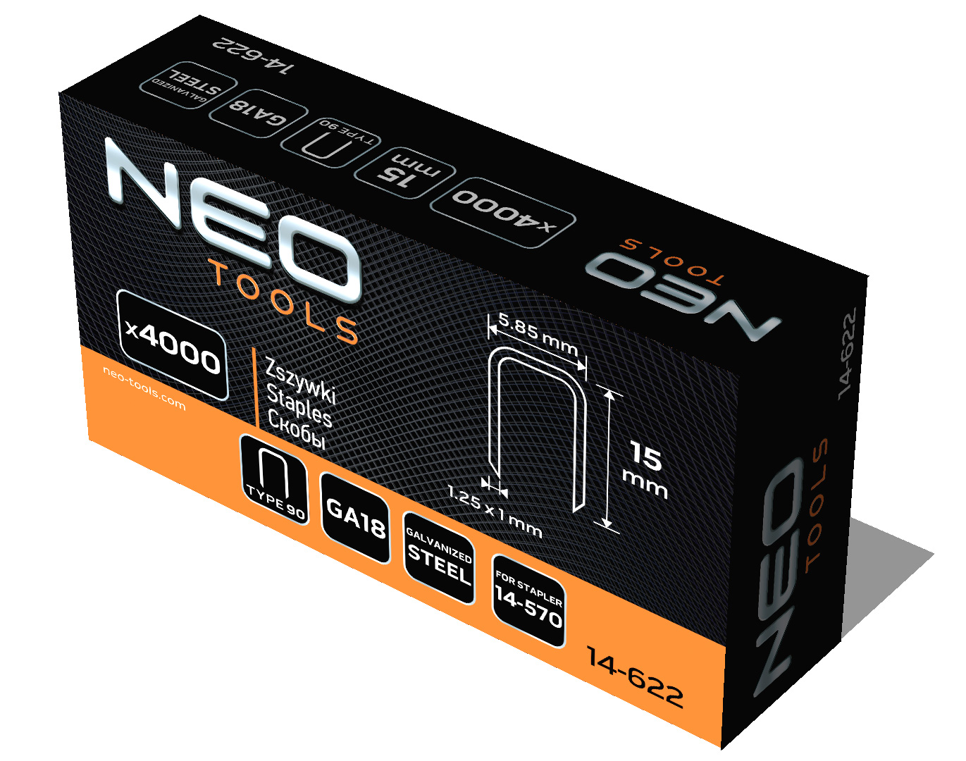 Скоби оцинковані для пневматичного степлера (14-570), GA18, тип 90 (4K), довжина 15 мм, 4000 с, NEO 14-622