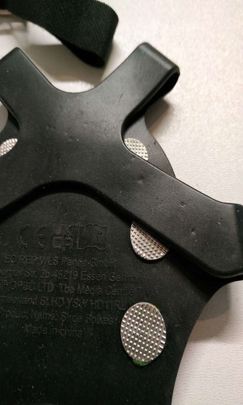 - Шипи з нержавіючої сталі 11 шипів з нержавіючої сталі рівномірно розташовані на край підошви, що дозволяє користувачам зберігати рівновагу на снігу. Ці крижані пробки викидають традиційну структуру з одним шипом. На кожному шипі є 5 зубців (4-5 мм), що забезпечує набагато краще зчеплення. Зносостійкі та корозійно-стійкі шипи з нержавіючої сталі 304, висока щільність і твердість зубів з нержавіючої сталі 201 забезпечують максимальну довговічність льодових бутсів.