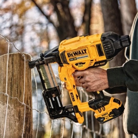 - Степлер Dewalt DCFS950 ідеально підходить для кріплення дроту, сітки для стовпів паркану у сільському господарстві, будівництві та лісництві.