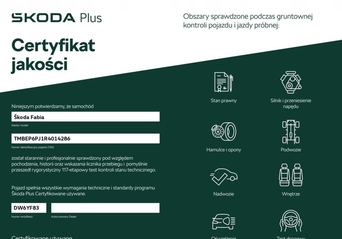 Мета програми - продавати перевірені вживані автомобілі - їх технічний стан, курс та історія були детально перевірилися за допомогою суворого контрольного тесту на ступінь 117. Думка цього тесту підтверджується сертифікатом якості бренду.