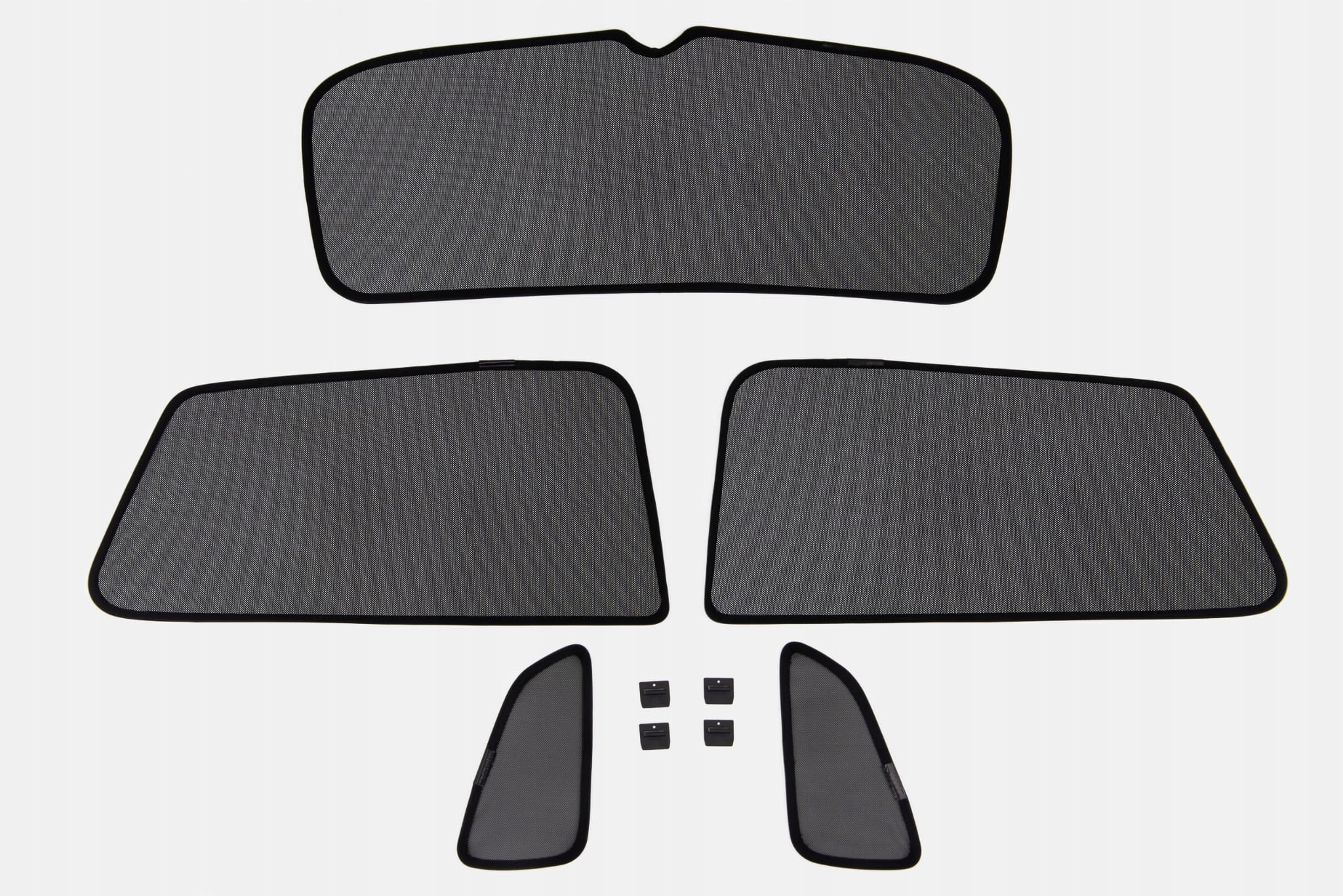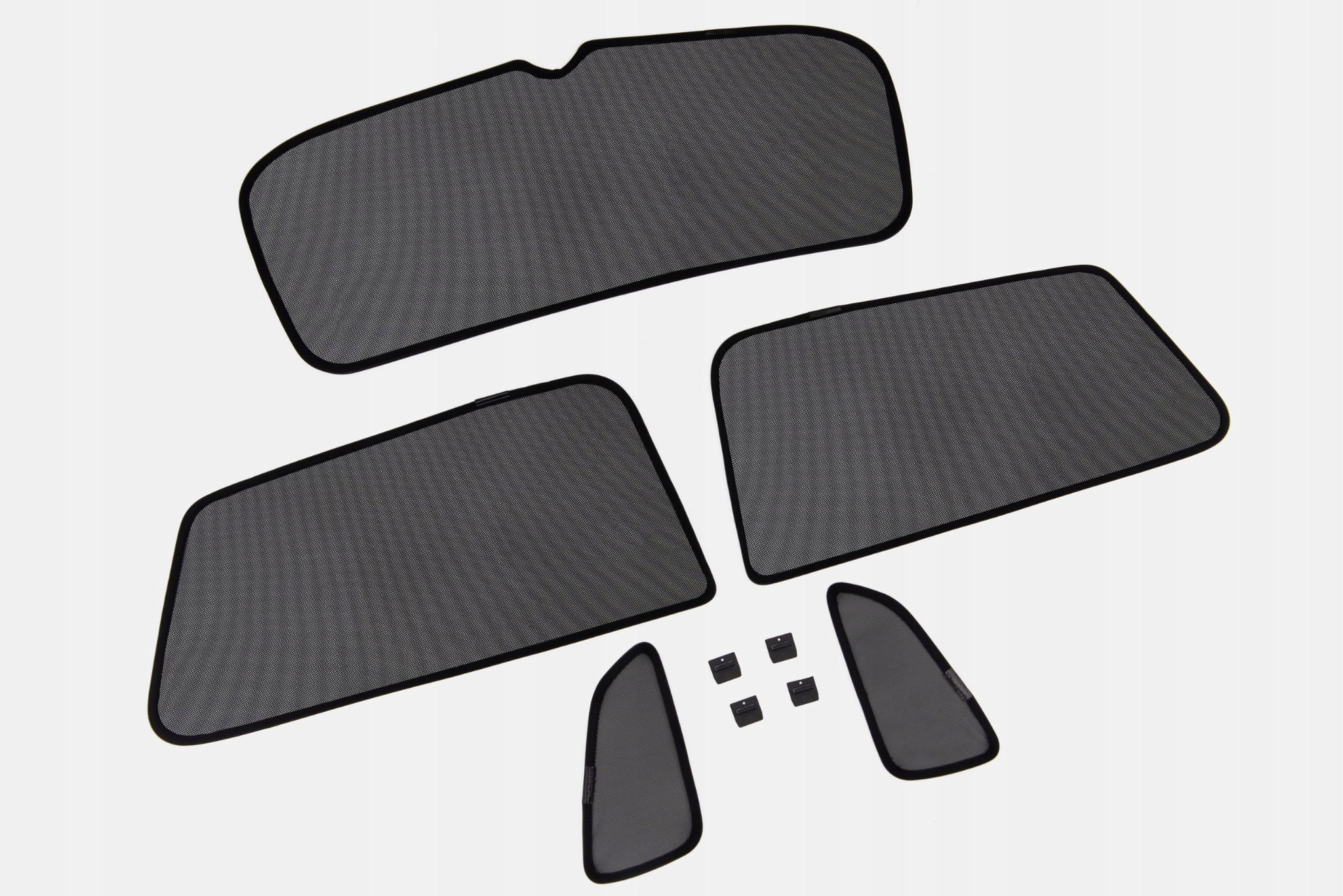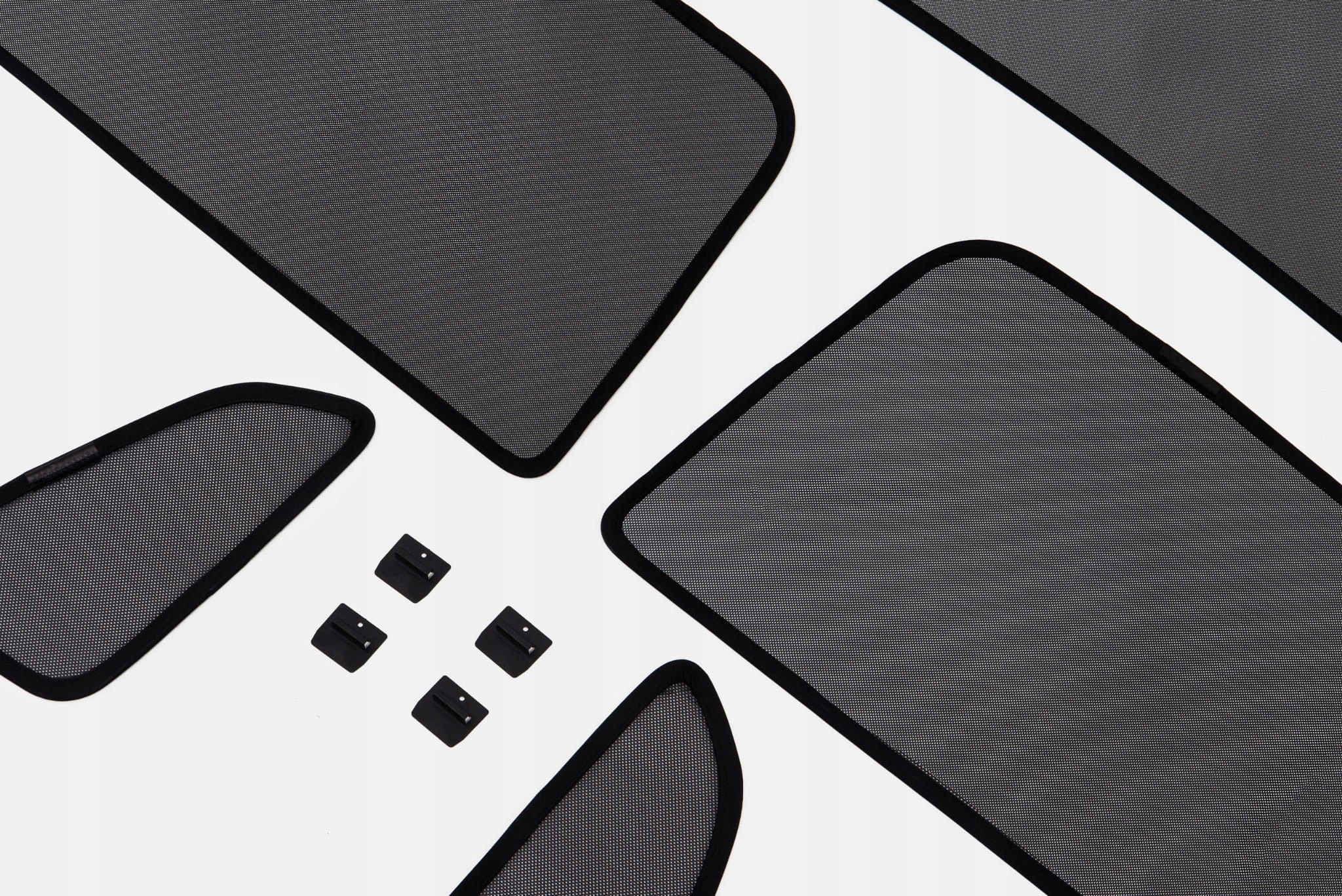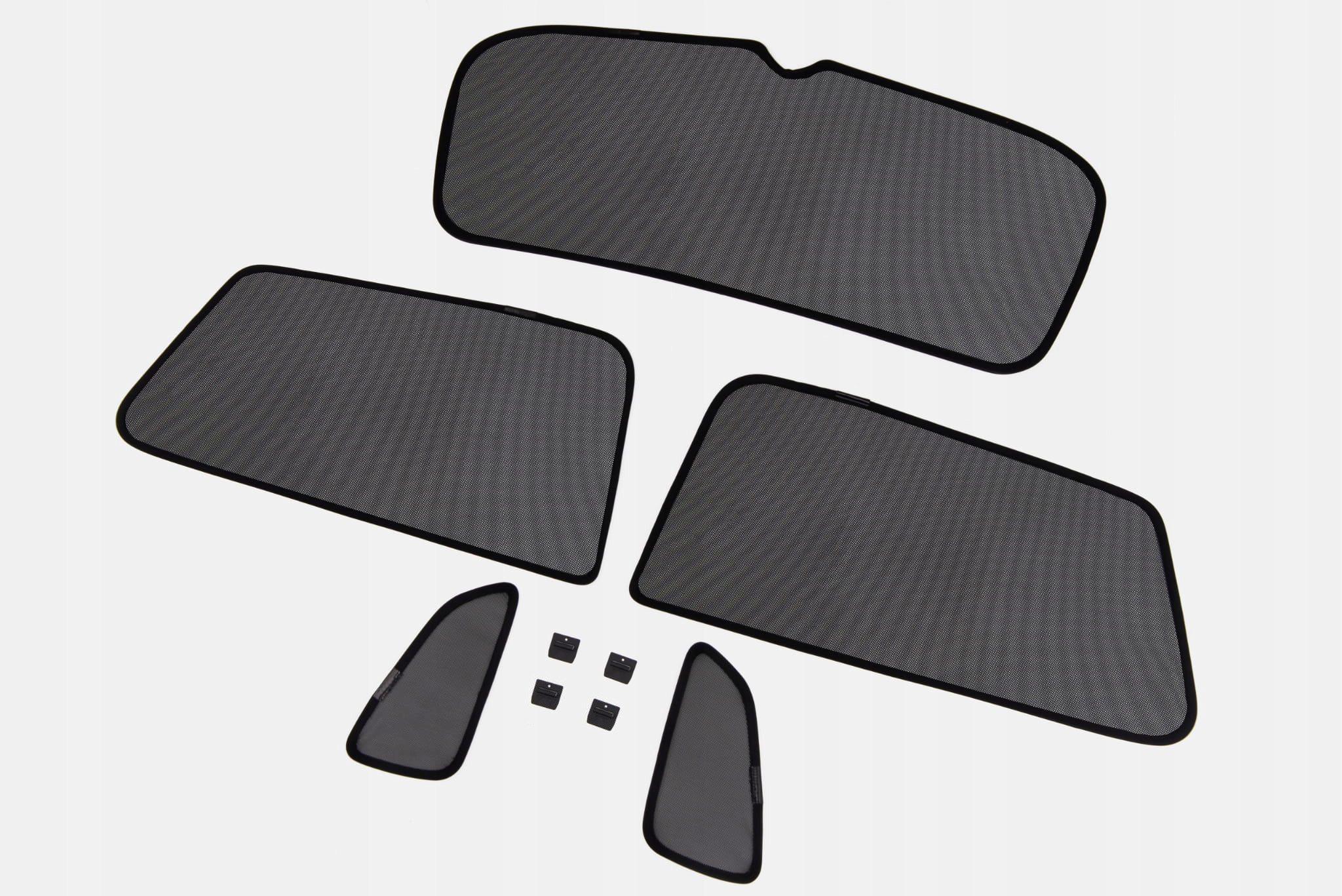 - Набір з 5 штук магнітних шторок (чотири для бокових задніх вікон і одна для вікна дверей багажника) + додаткові елементи кріплення
