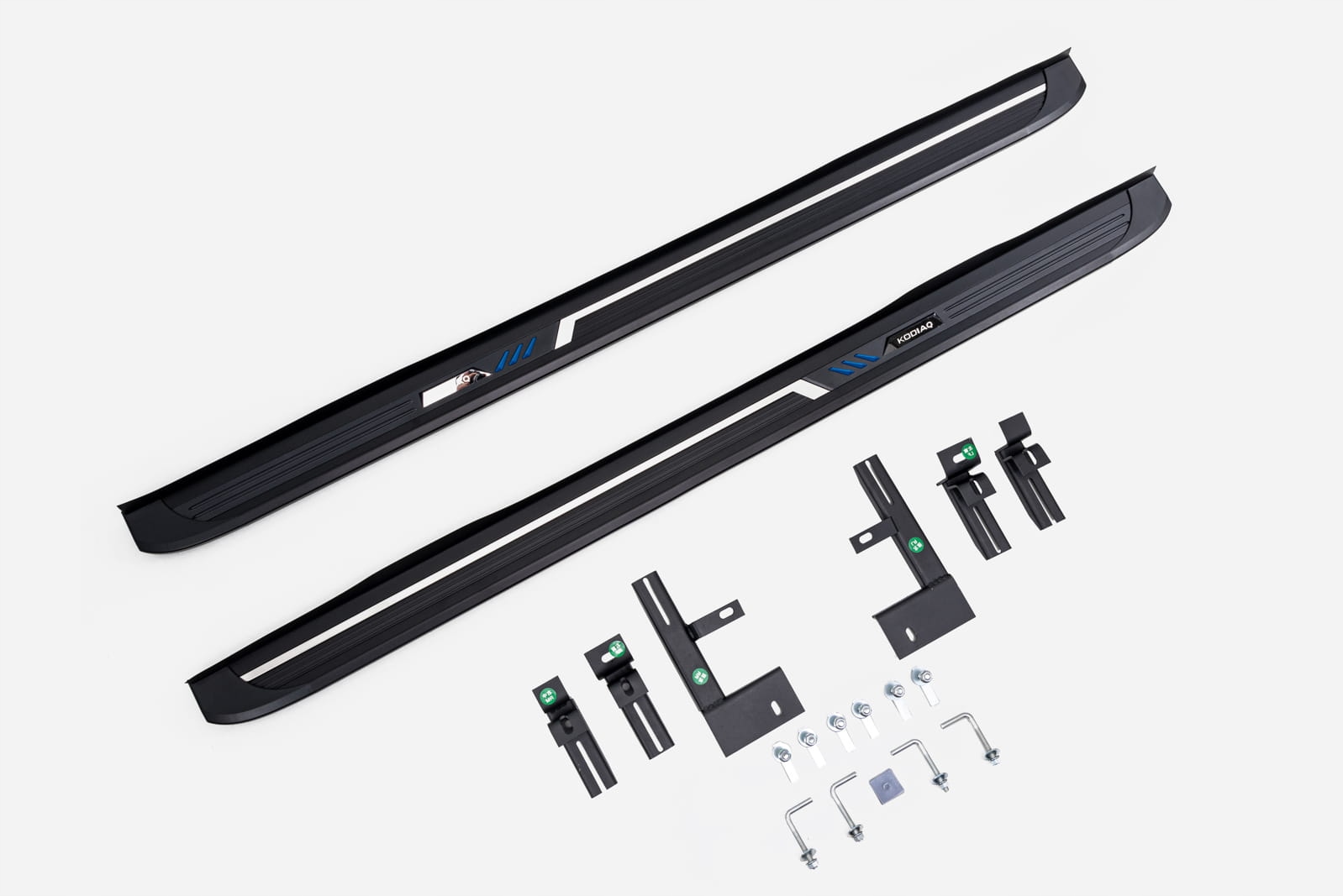 Бічні підніжки розроблено для підвищення комфорту під час входу та виходу з автомобіля, а також для забезпечення більш зручного робочого положення під час розміщення вантажів на даху автомобіля. Пороги не тільки забезпечують комфорт, але і підвищують безпеку, що особливо важливо для дітей і людей похилого віку.