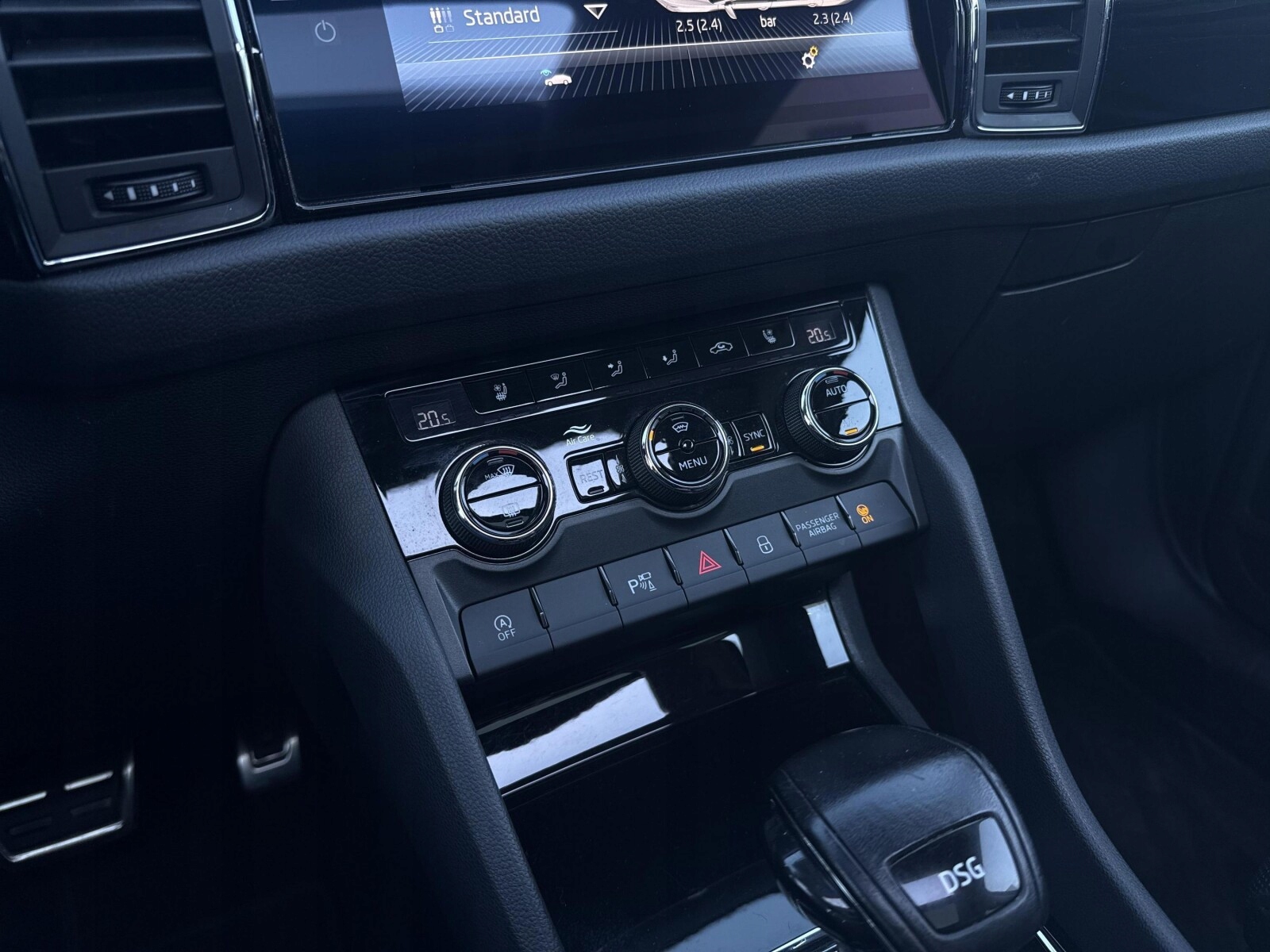 Ергономічні сидіння з функцією масажу, вентиляцією та електрорегулюванням з пам’яттю Шкіряна оббивка Третій ряд сидінь – 7-місна версія Тризонний автоматичний кондиціонер (Climatronic) Зимовий пакет із підігрівом сидінь та форсунками омивача Розетка 230 В та USB ззаду Шкіряне багатофункціональне кермо з підігрівом і перемикачами Внутрішнє освітлення Віртуальний кокпіт – цифровий годинник з можливістю персоналізації. Підігрів лобового скла