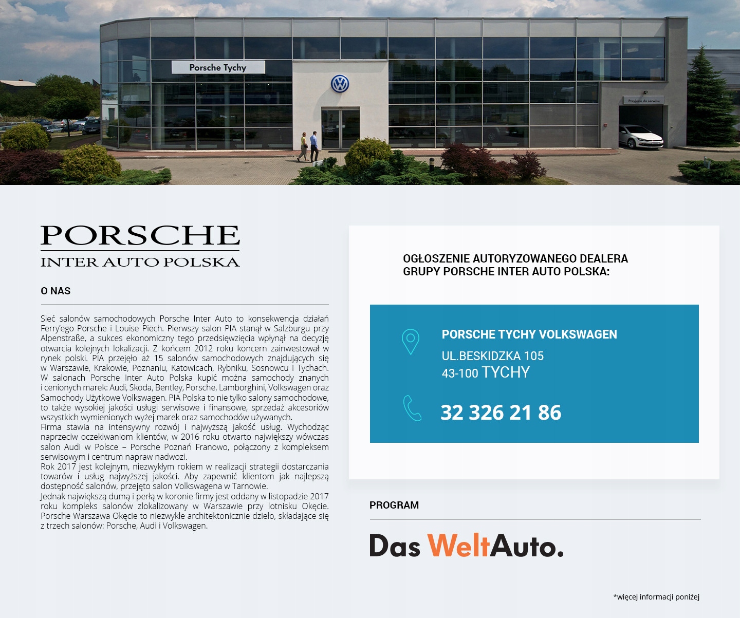 PORSCHE INTER AUTO POLSKA, офіційний дилер Volkswagen, Skoda та Volkswagen Комерційні автомобілі, представляє