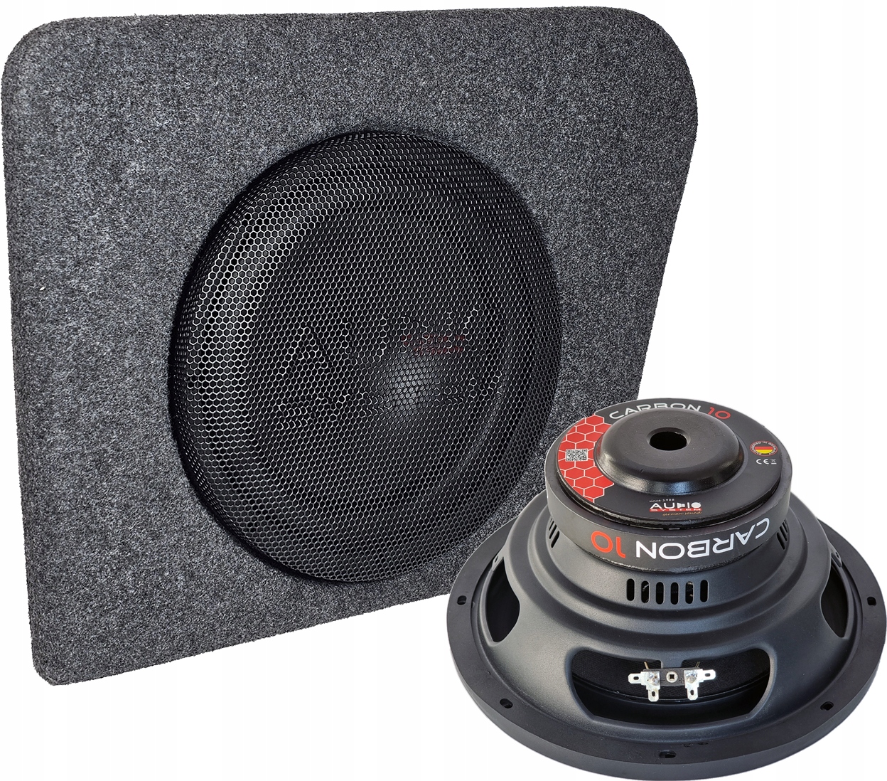 Сабвуфер Audio System Carbon 10 з високою якістю баса 25 см за дуже привабливою ціною, діафрагма з дорогоцінних натуральних волокон на каркасі, армованому скловолокном.
