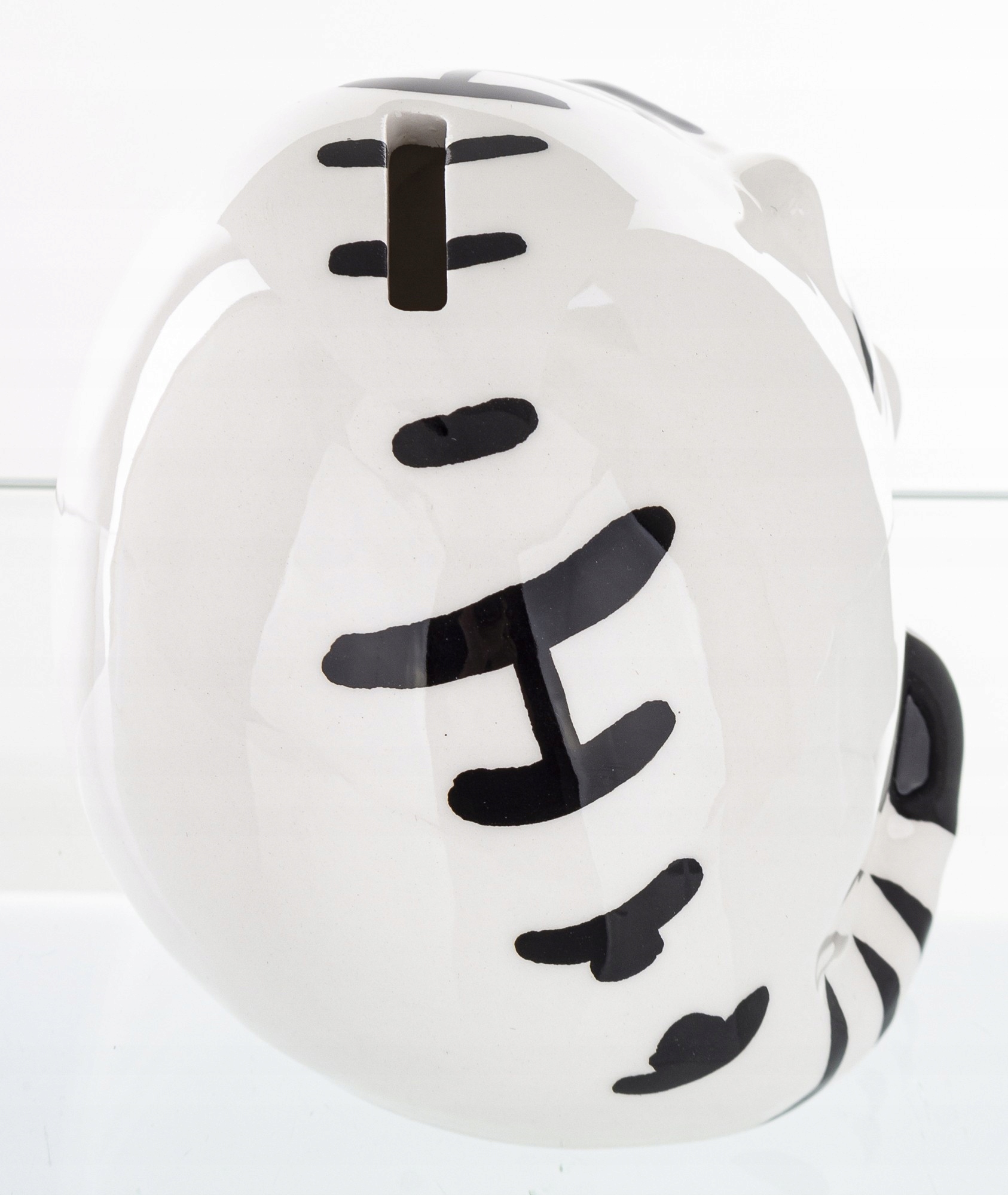 Представляємо чарівну керамічну скарбничку у формі білого тигра, який радує своєю милою мордочкою. Його унікальний візерунок у чорно-білих кольорах ідеально впишеться в будь-який інтер’єр – від дитячої кімнати, вітальні до офісу.