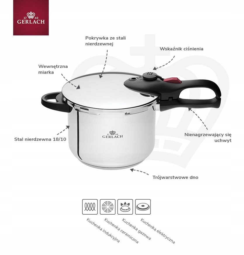 Приобретая «Скороварка Gerlach 6 л срібна» данный товар из каталога «Скороварки» вы можете быть уверены, что после оформления заказа, доставки в Украину, вы получите именно то, что заказывали, в оговоренные сроки и европейского качества.
