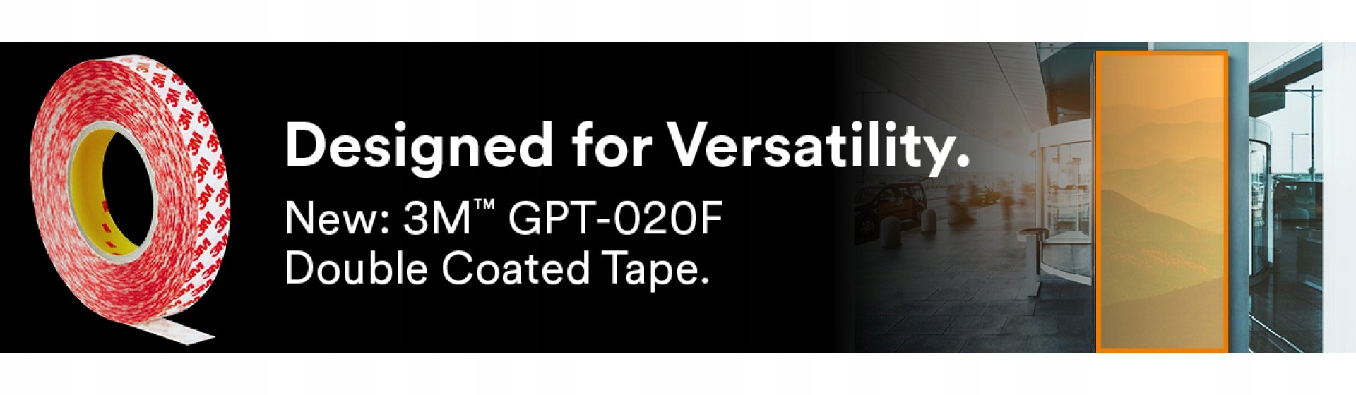 Універсальне використання: двостороння клейка стрічка 3M™ GPT-020F на поліефірній основі покрита двостороннім прозорим модифікованим акриловим клеєм без розчинників. Товщина стрічки 200 мікрон. Захисний шар (праймер) з поліпропіленової плівки білого кольору. 3M GPT-020F поєднує в собі високу міцність на відрив і зсув, забезпечуючи хорошу адгезію до широкого діапазону основ, як з високою, так і з низькою поверхневою енергією. Стрічка має високу початкову адгезію і високу стійкість до вологи. Його легко наносити та конвертувати завдяки використанню фольгованого вкладиша. Забезпечує стійкість до високих температур: короткочасно до 190˚C і довготривало до 90˚C.