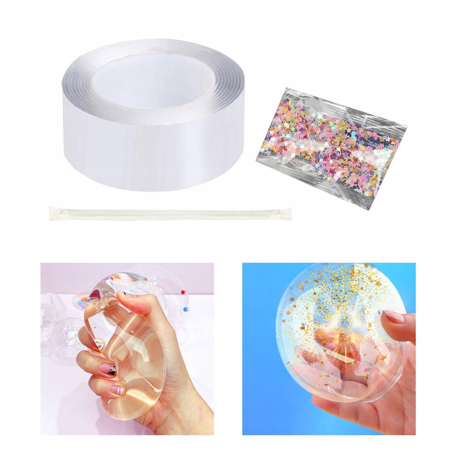 Простий у використанні: просто відріжте потрібну частину стрічки, загніть краї та покладіть у соломинку, відірвіть папір-підкладку, потім надуйте бульбашку, і ви нарешті отримаєте м’яч, який вам подобається.