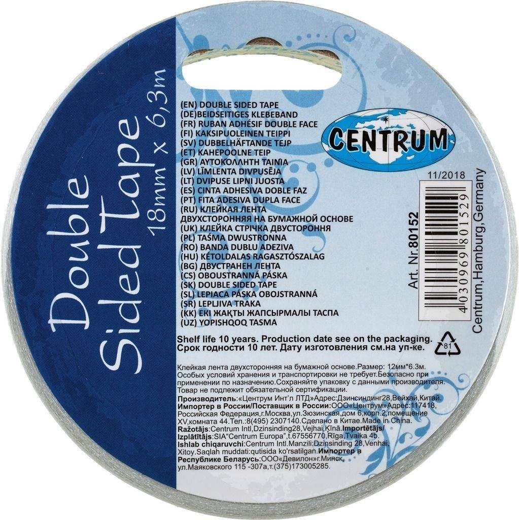 Оплачивая «ЛЕНТА ДВУХСТОРОННЯЯ 18ММХ6,3М ЦЕНТРАЛЬНАЯ 80152», вы можете быть уверены, что данный товар из каталога «Ленты» будет доставлен из Польши и проверен на целостность. В цене товара, указанной на сайте, учтена доставка из Польши. Внимание!!! Товары для Евросоюза, согласно законодательству стран Евросоюза, могут отличаться упаковкой или наполнением.