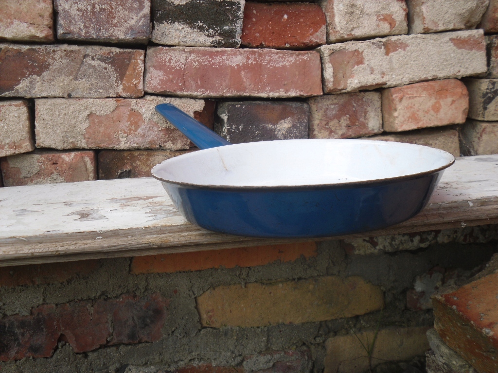 Сковорода, стара емальована сковорода, PRL, синя прикраса, каструля, середовище проживання