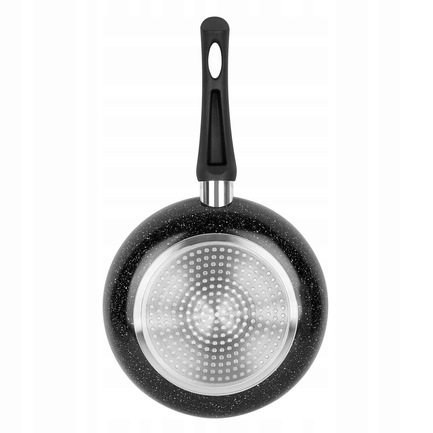 Мармурові антипригарні сковорідки Tadar Marmara Black 20/24/28 см виготовлені з міцного алюмінію. Ця сировина також легка, що робить смаження дуже зручним. Ручка виготовлена з матеріалу, що не нагрівається. Завдяки стільниковій технології дна ви можете використовувати мінімальну кількість жиру, отже, готувати більш здорові страви. Антипригарне покриття, що імітує граніт, забезпечує легке видалення залишків і безпроблемне миття. Каструля підходить для будь-якої плити (включаючи індукційну). Кам’яні каструлі, що входять до цього набору, також забезпечують вам дуже хороший коефіцієнт теплопоглинання та рівномірне нагрівання інгредієнтів, щоб досягти меншого споживання енергії та заощадити ваш час. Набір рекомендований, в тому числі, людям з алергією - він гігієнічний і не містить шкідливих речовин, які можуть проникнути в їжу під час смаження.